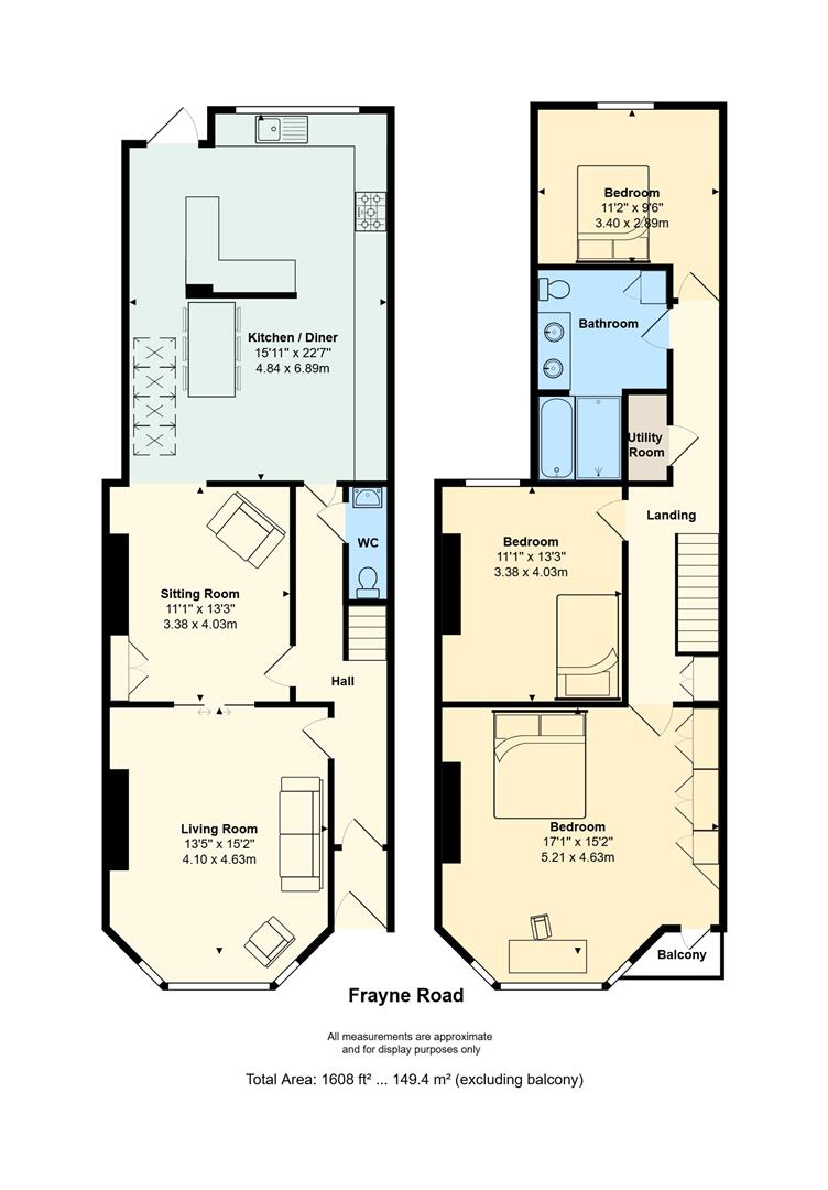 Nestled on the charming Frayne Road in Bristol, this stylish Victorian terrace offers a delightful blend of period features and modern living. Spanning an impressive 1,442 square feet, the property boasts three spacious reception rooms, perfect for both entertaining guests and enjoying quiet family evenings.
