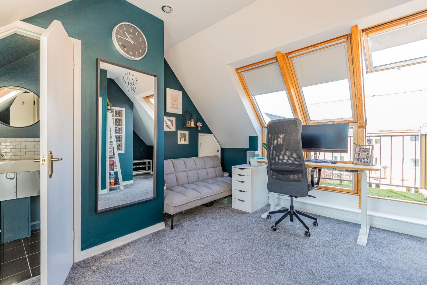 A spacious and full loft conversion boasting an innovative glass fronted balcony from the rear with 6 velux roof windows - one of which is a door onto the balcony, storage within the eaves plus 2 velux roof windows to the front.