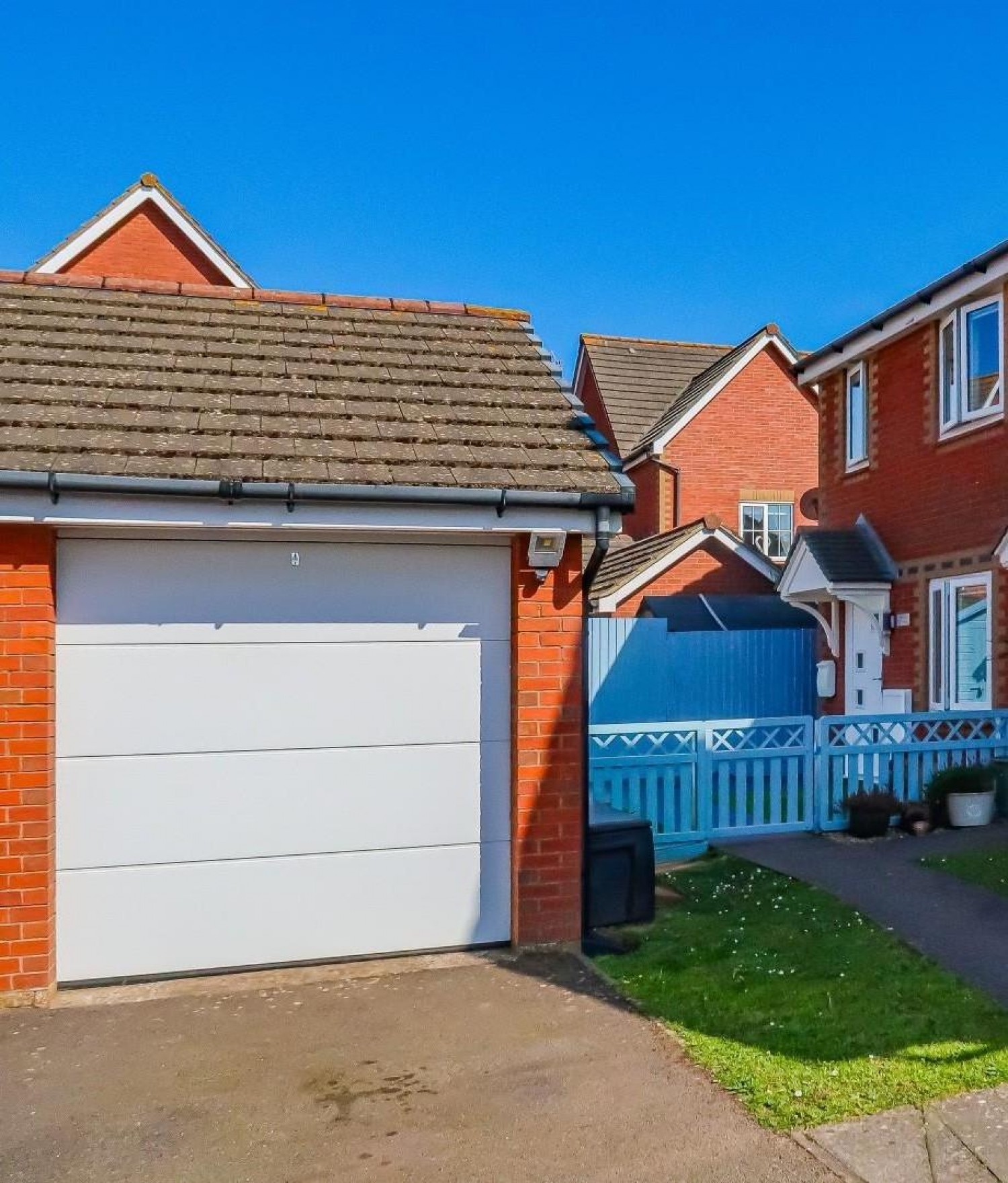 With quality artificial lawns to both front & rear gardens plus off road parking and single garage - electric shutter door.