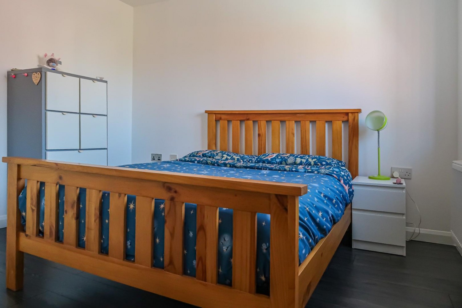 Master double bedroom, 2 windows to front, with fitted large wardrobe - floor to ceiling mirrored sliding doors, engineered wood flooring, telephone point.