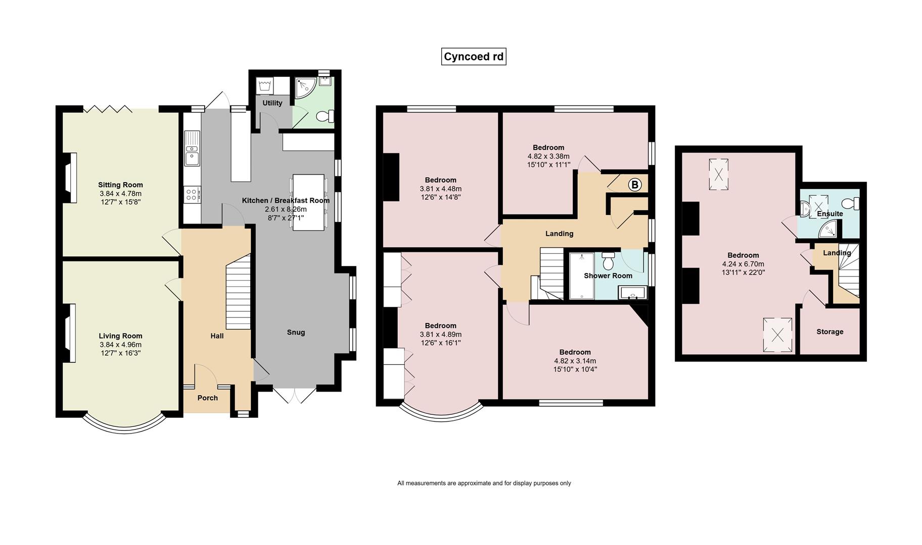 The first floor has 4 double bedrooms, and family shower room with stairs leading from the