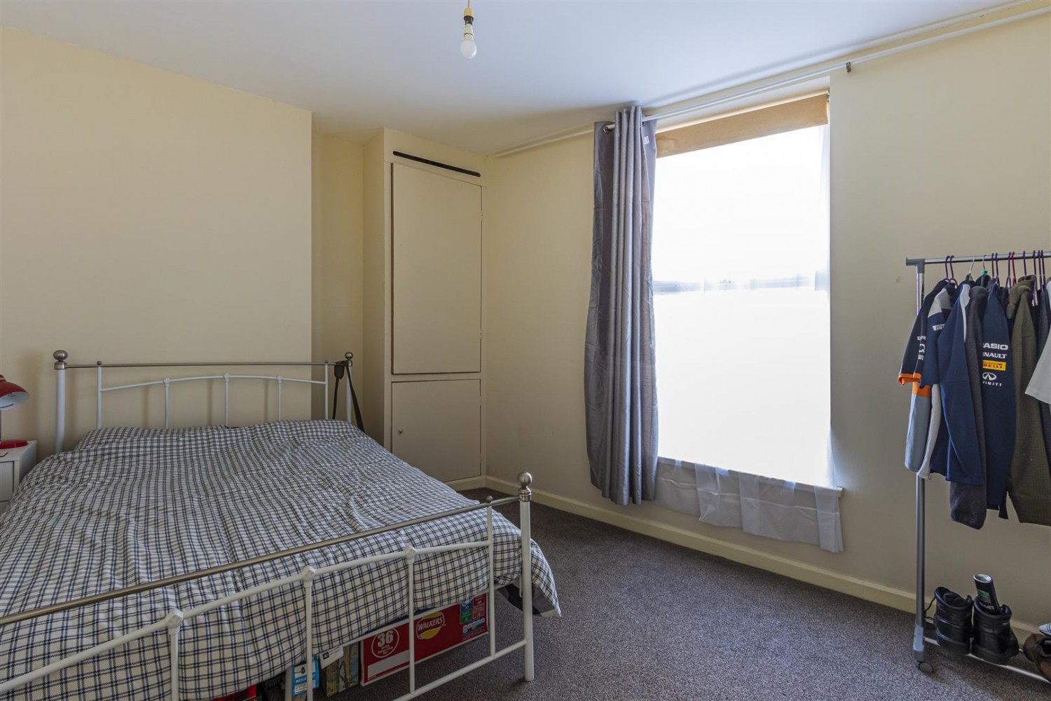 A large double bedroom to the side elevation with a double glazed window, carpeted flooring and radiator. Cupboard housing the combi boiler which we are informed is approximately 6 years old has been regularly serviced