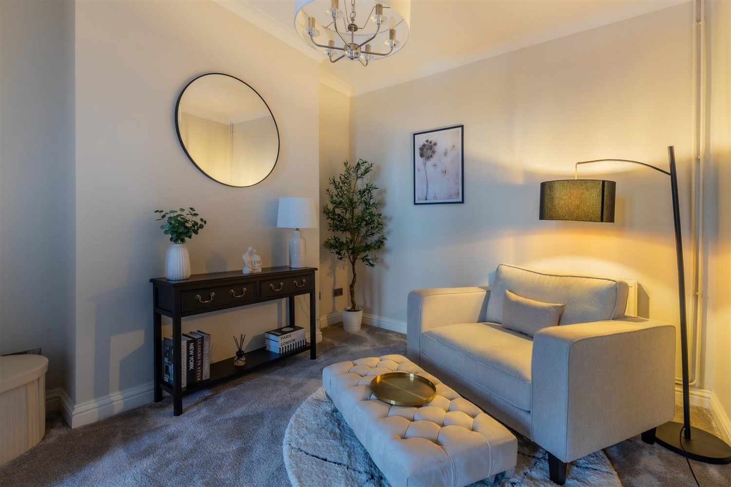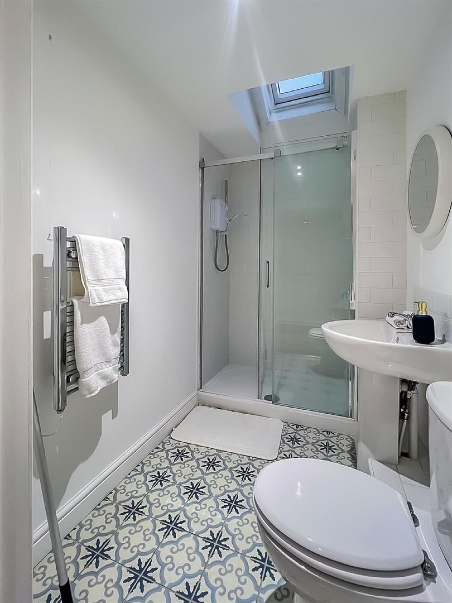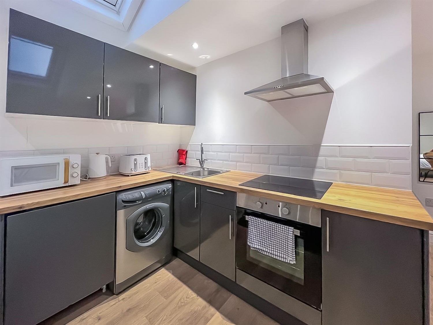 Self contained with modern kitchen living space, separate shower room, access to garden and rear lane