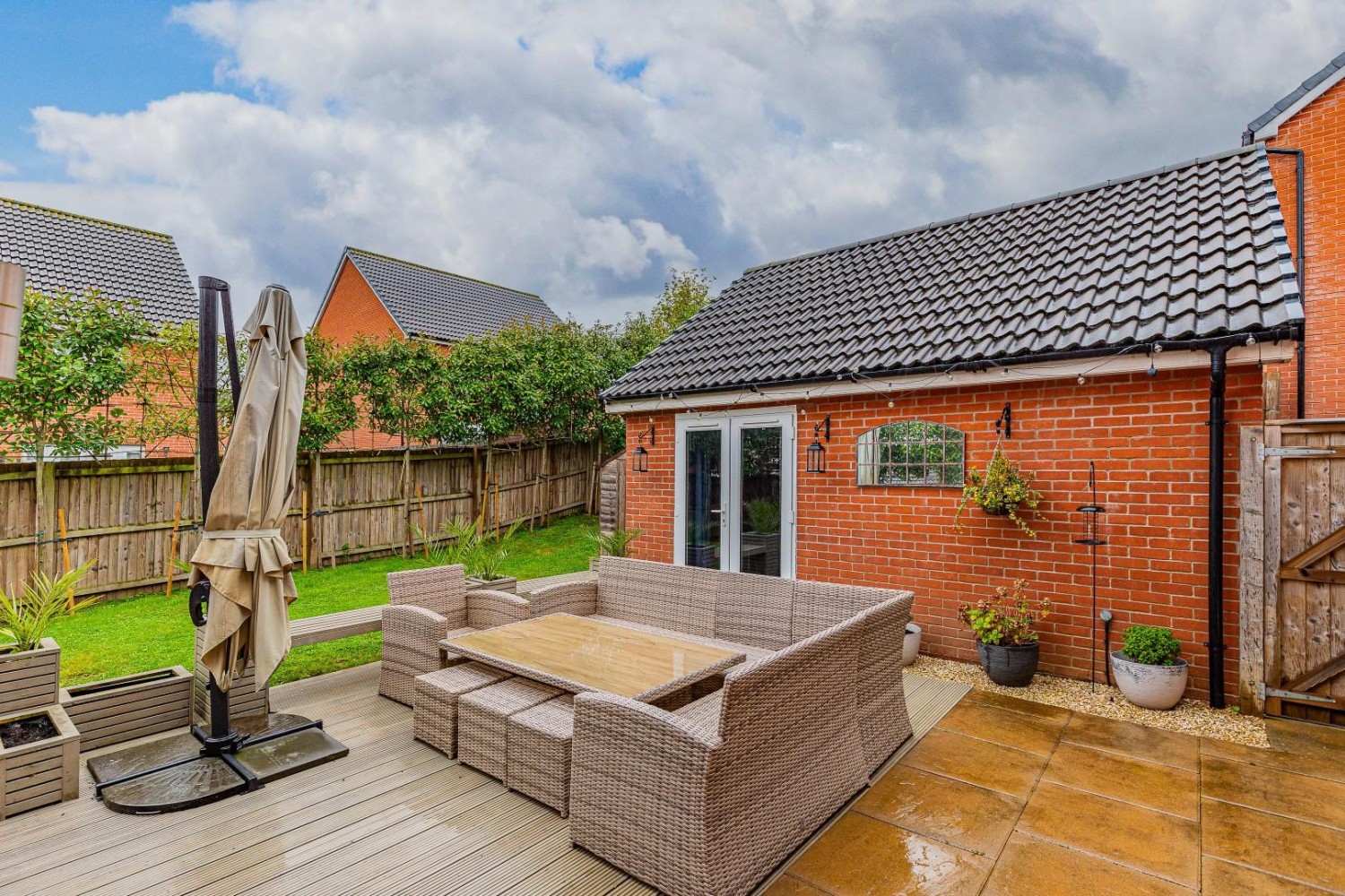 With three modern bathrooms, daily routines are made effortless, catering to the needs of a busy household. The beautifully landscaped garden is a delightful outdoor space, with both patio and lawn. It is nicely established and perfect for enjoying the fresh air or hosting summer barbecues.