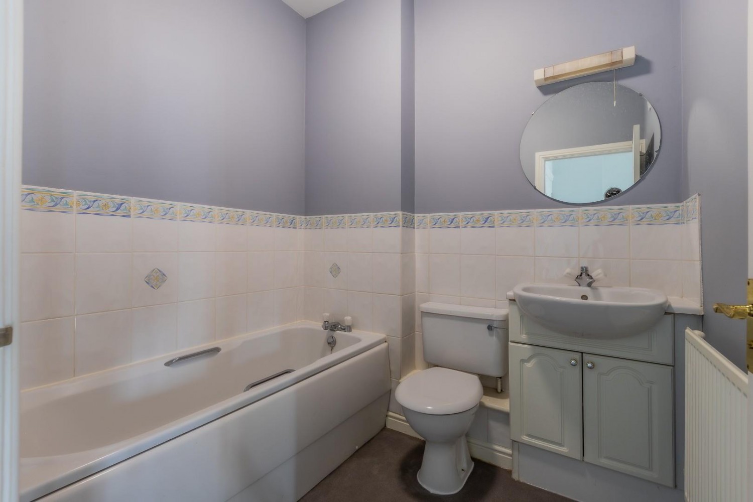 Fitted with a modern white suite comprising a panel bath, vanity wash hand basin and close coupled, tiled surround, light/shaver point, extractor fan.