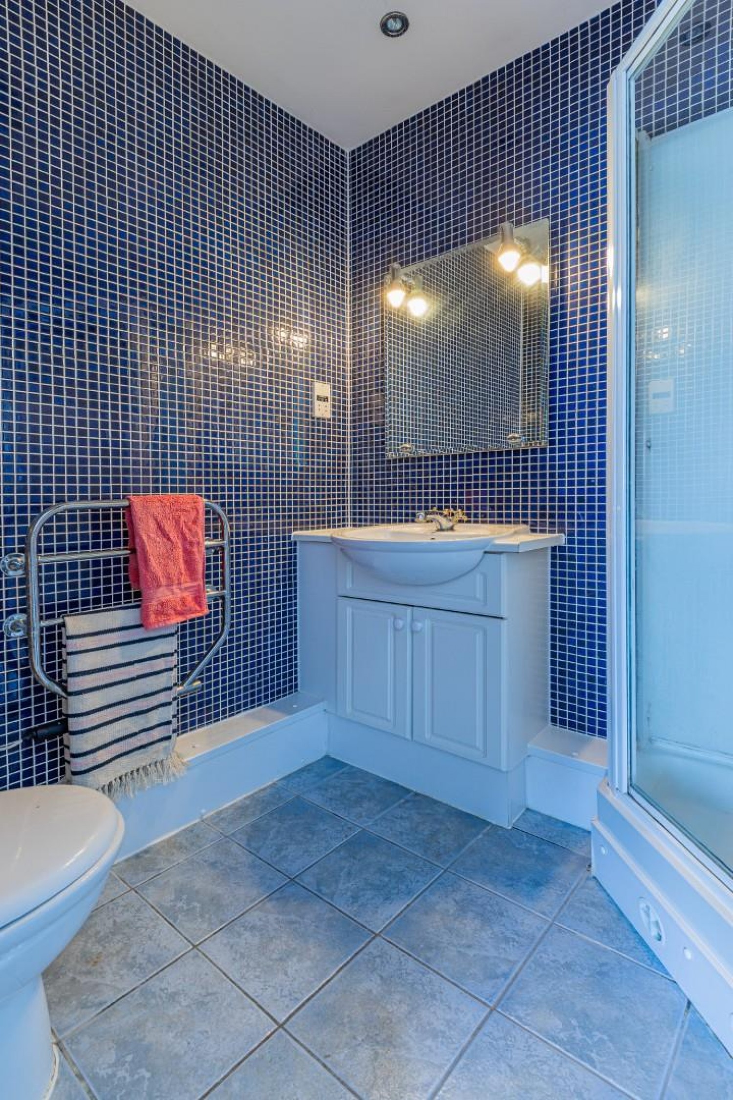 Fully tiled and tiled floor, fitted 3 piece suite comprising corner shower cubicle, pedestal wash hand basin and close coupled wc, extractor fan.