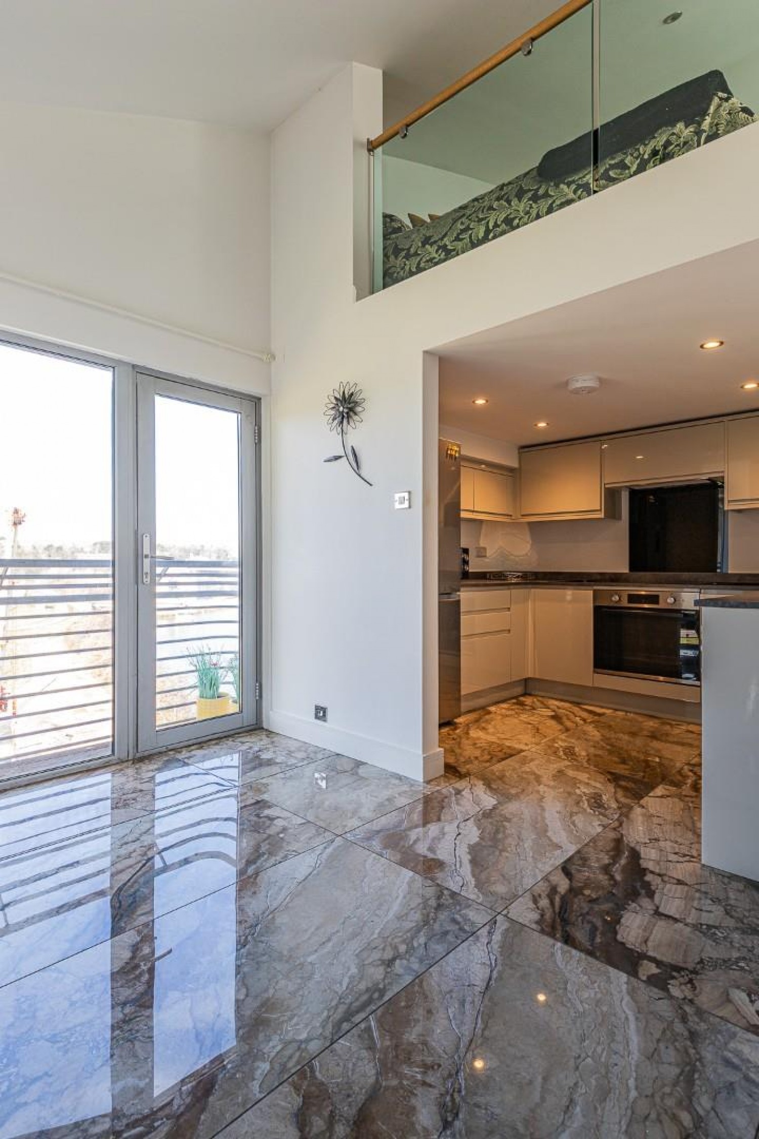 Briefly comprising a communal entrance, hall, spacious living room with side windows & door leading onto a Westerly facing balcony overlooking the river, from the living room - oak & glass stairs lead to a large Mezzanine style bedroom with steel/glass balustrade overlooking the main room, newly fitted stylish kitchen - integrated dishwasher, washing machine plus built in oven, hob & cooker hood with fridge/freezer to remain. Finally the newly fitted stunning bathroom with shower completes the accommodation.