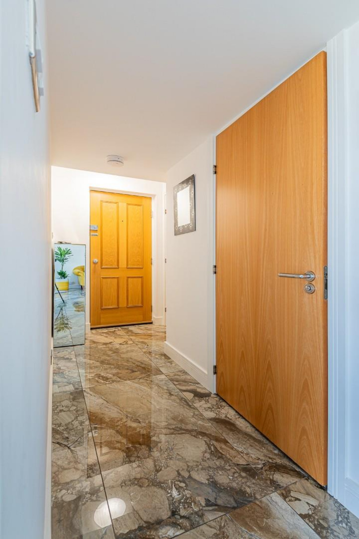 Porcelain tiled flooring, generous airing/cloaks cupboard with hot water cylinder & light.