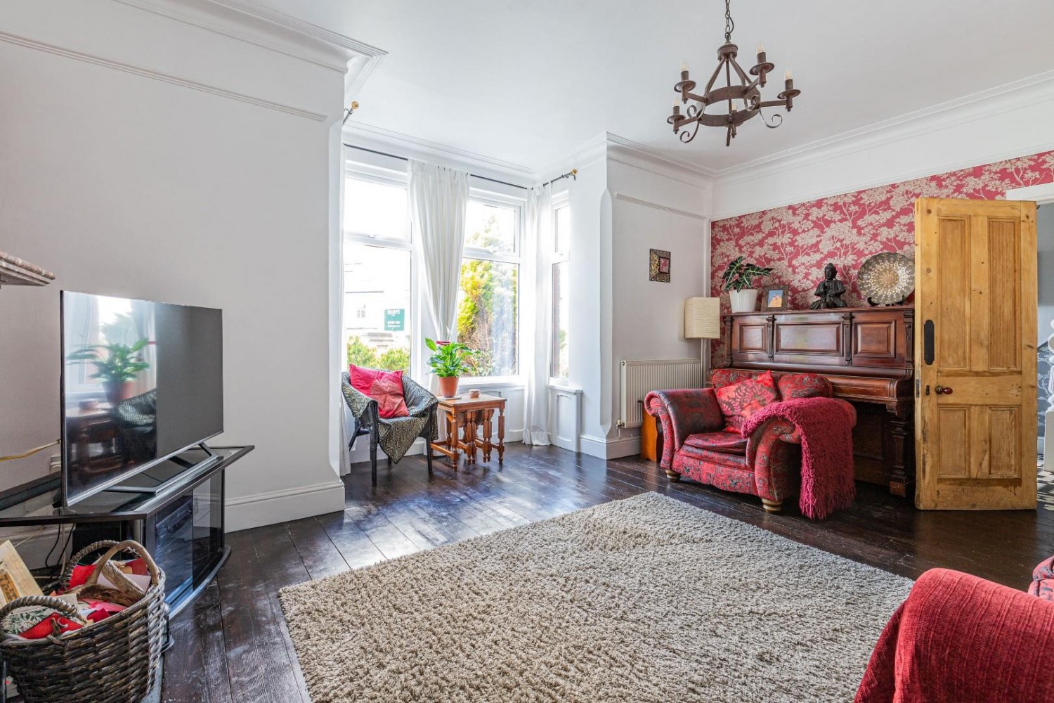 Large & elegant main living room, deep bay window to the front with pleasant aspect overlooking the church grounds, stripped pine floor, marble Antique fire surround with cast iron insert, TV point.