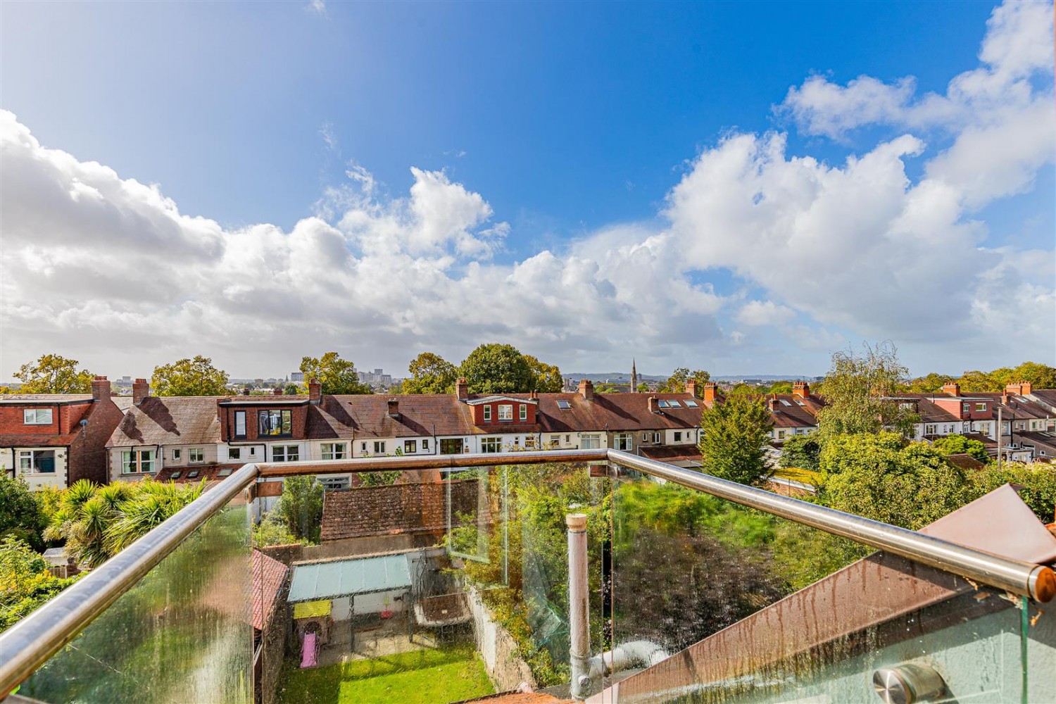 The first floor hosts a sleek modern family bathroom , three double bedrooms, one with its own en-suite,. Upstairs, a spacious fourth bedroom comes with an en-suite wet room and a private balcony, where you can enjoy far-reaching views over Cardiff.
