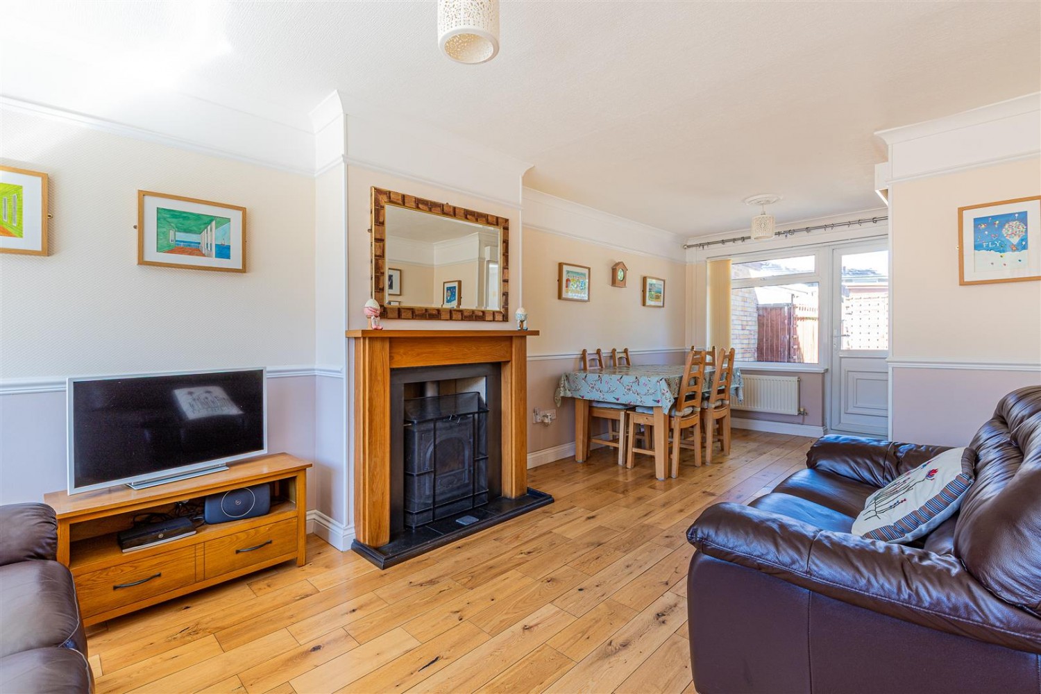 The accommodation comprises: entrance hall, a spacious lounge/diner with feature fireplace, a fitted kitchen, two good-sized double bedrooms, and a four-piece family bathroom.