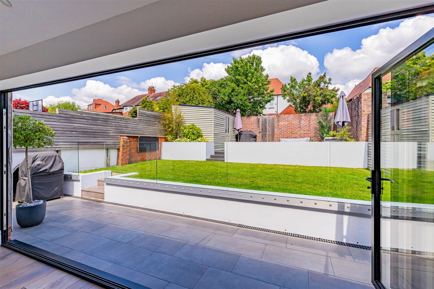 The accommodation offers a very large entrance hall which is a real feature of these houses, WC, full width lounge to front, and lovely open plan kitchen living area with space for a large dining table, sofas, and a sleek fitted kitchen with central island. This space further benefits from bi-folding doors, roof skylights, and handy reception room off it, which is currently used as a play room. Upstairs there is a bright landing, four generous double bedrooms, beautiful bathroom and stairs leading to the second floor, which is where the whole loft space has been converted into a bedroom suite, with vaulted ceilings, roof skylight windows and modern ensuite shower room. Outside there is a pretty front garden, side access with storage space, and fully landscaped rear garden with patio, glass balustrade, lawn, rear patio, large shed and rear access. The garden is ideal for a young family and entertaining.