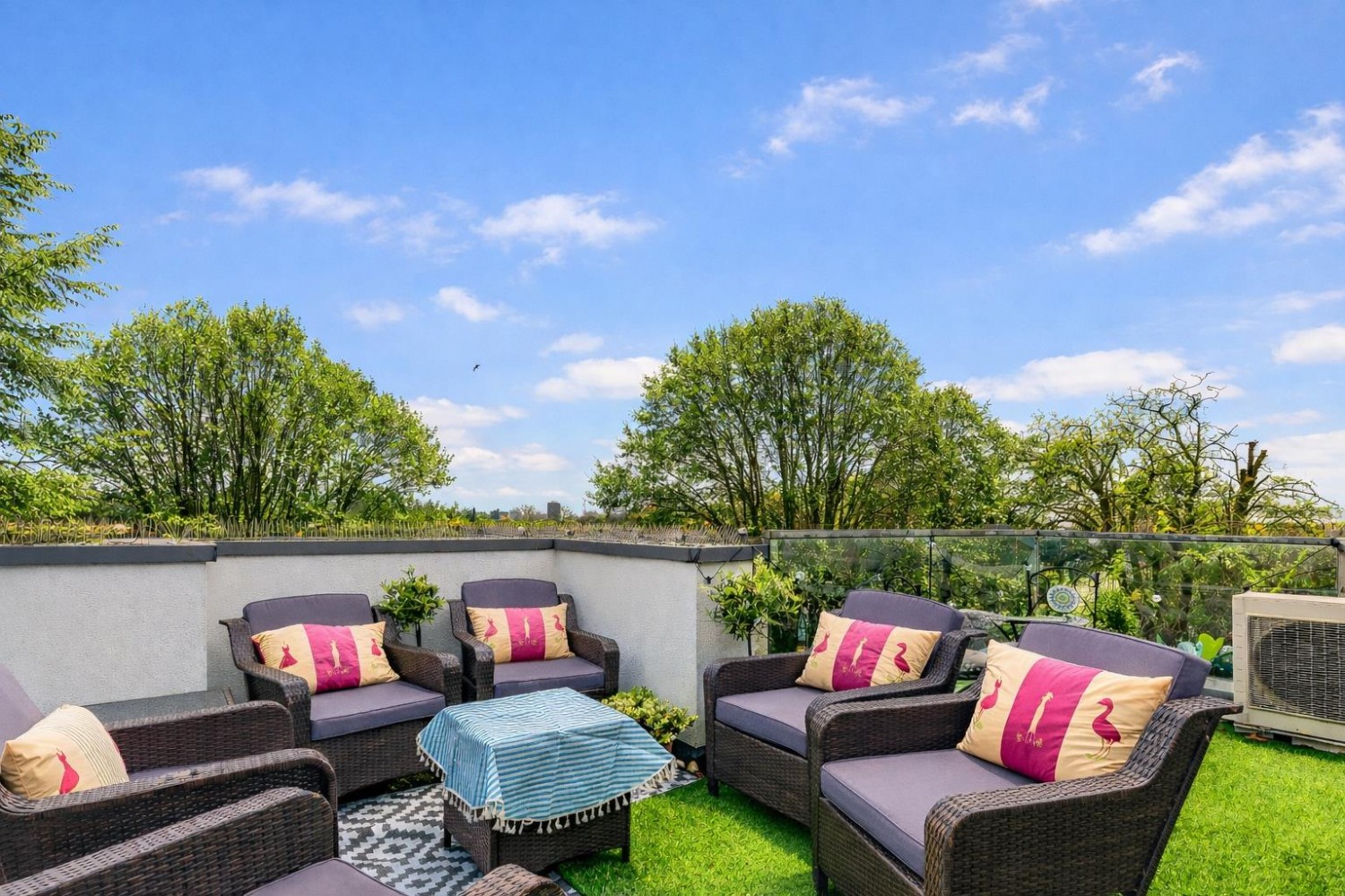 One of the standout features of this property is the stunning roof terrace, which provides breathtaking views of the surrounding area. This outdoor space is perfect for relaxing or hosting gatherings with friends and family, offering a private retreat in the heart of the city.
