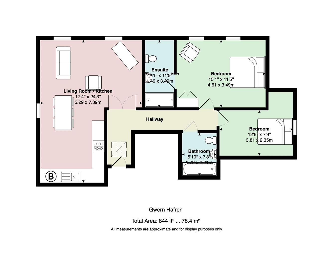 The apartment features a spacious lounge diner with a modern fitted kitchen. The apartment comprises of two well-appointed bedrooms, one en-suite & one family bathroom.