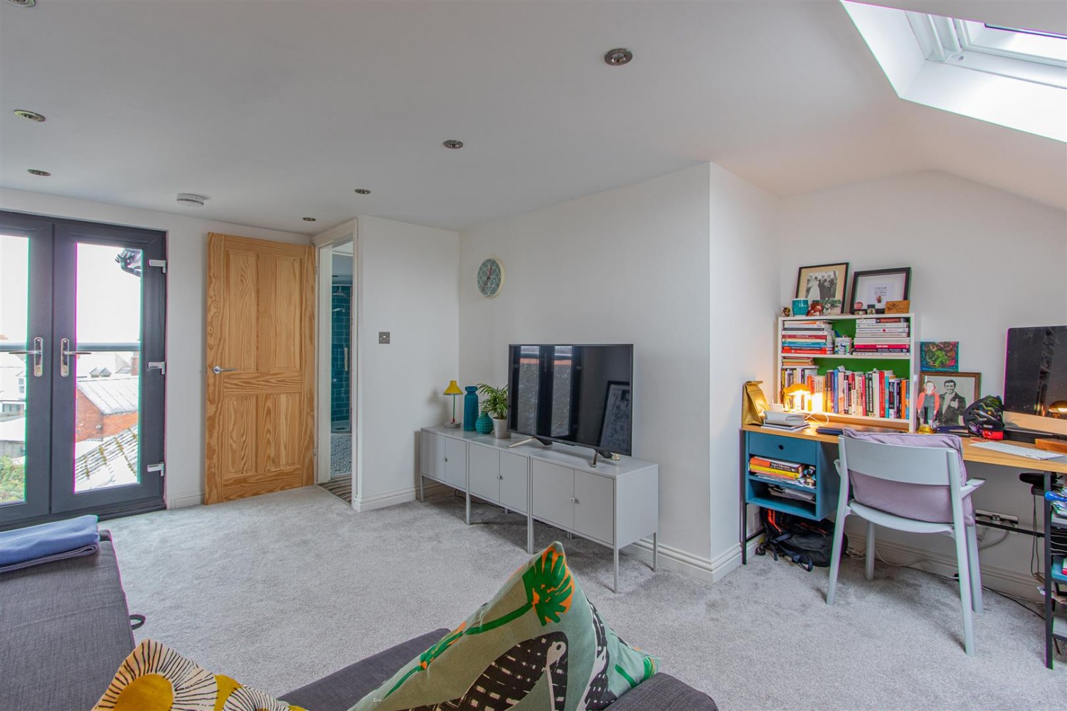 Fantastic space with carpeted floor, radiator, storage in eaves, double glazed roof window to first, uPVC double glazed French doors to “Juliet” balcony