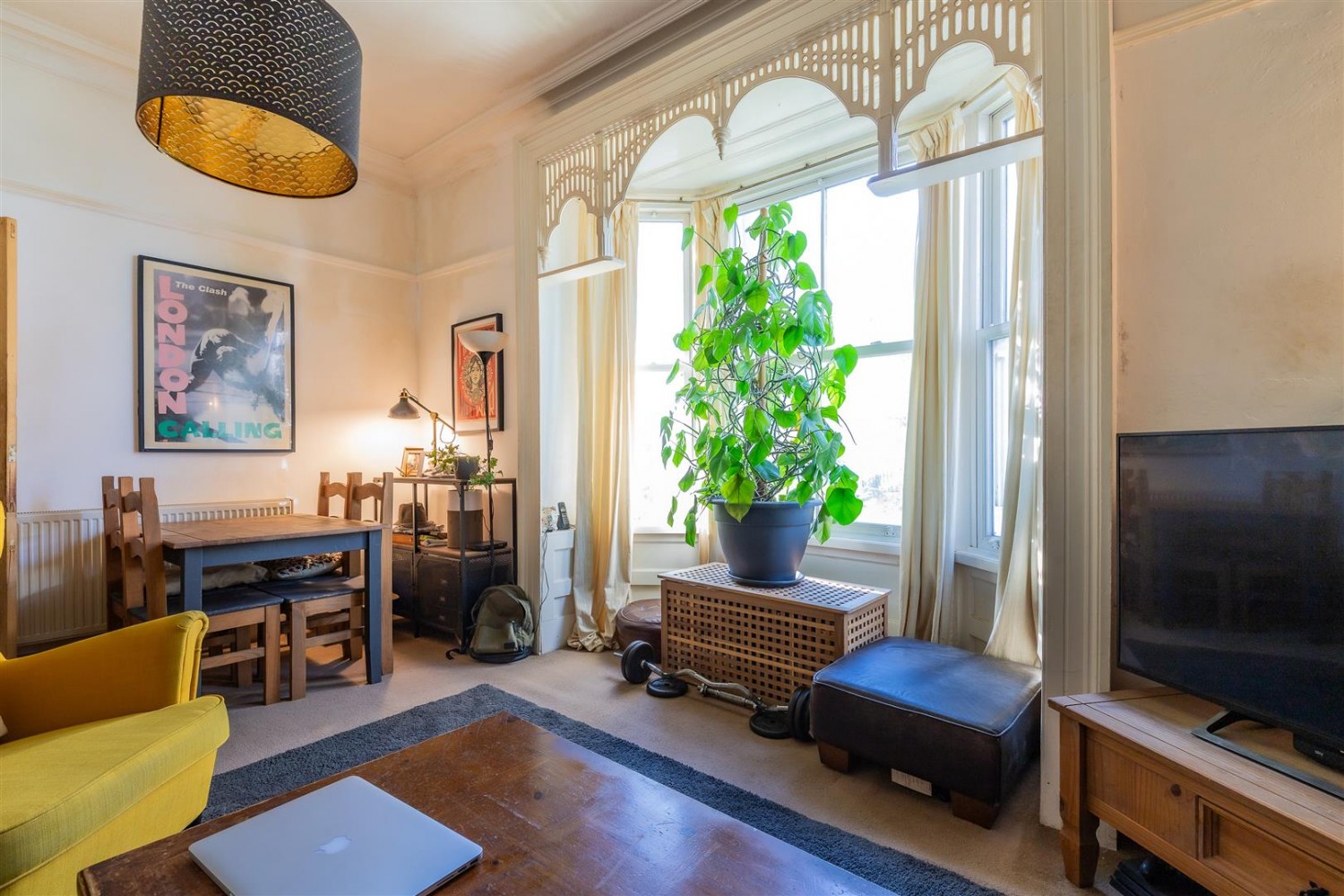A deceptively spacious ground floor flat with high ceiling, features and a private garden. What a location.... walk into town !