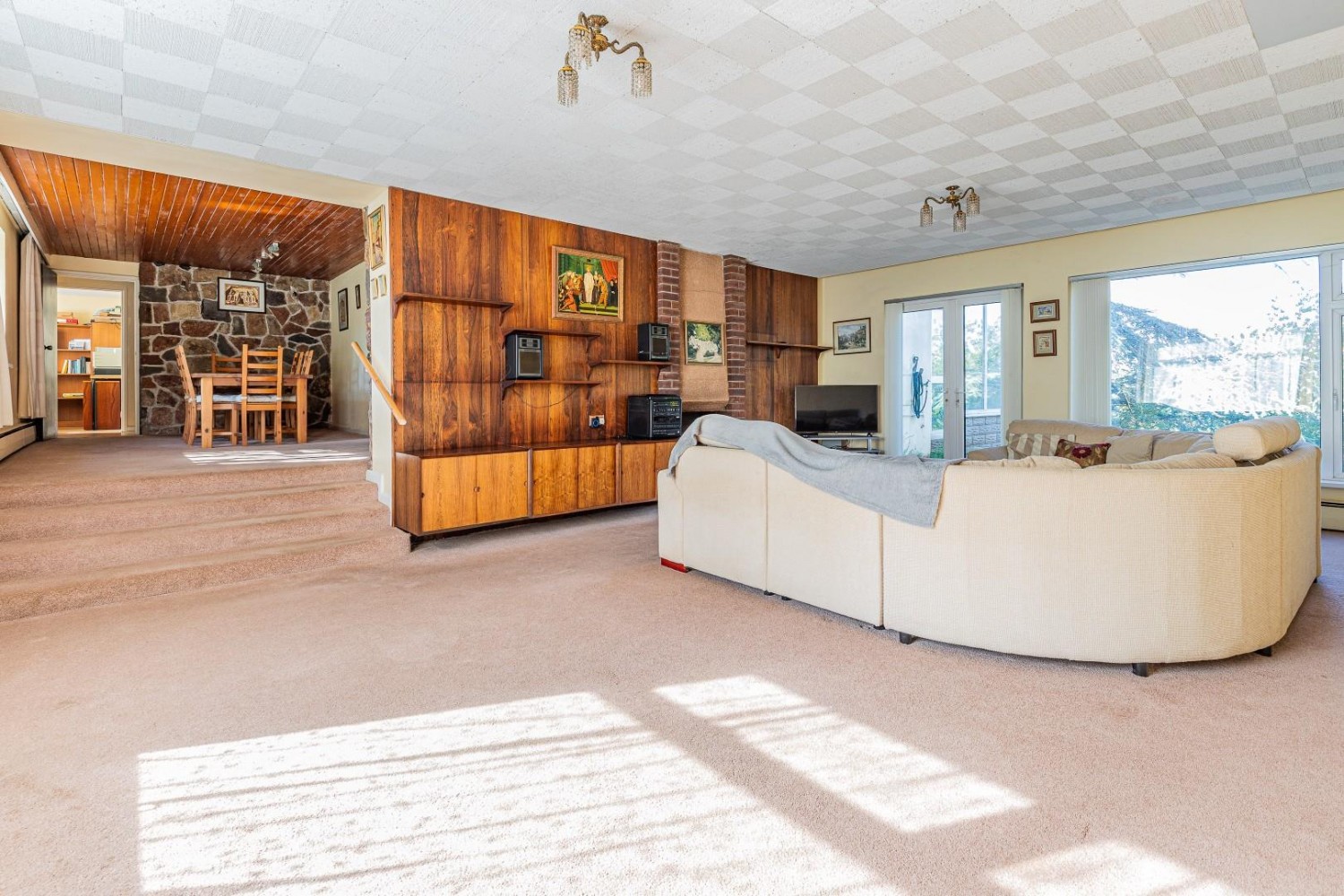 Large formal living room, window to front, feature exposed stone wall, to one corner a cocktail bar, open plan with 2 steps leading into the lounge.