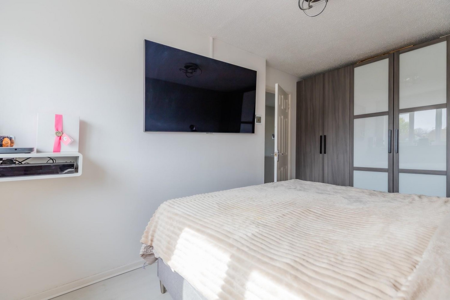 Master double bedroom, window to front, TV point, with 3 built in double wardrobes to one wall.