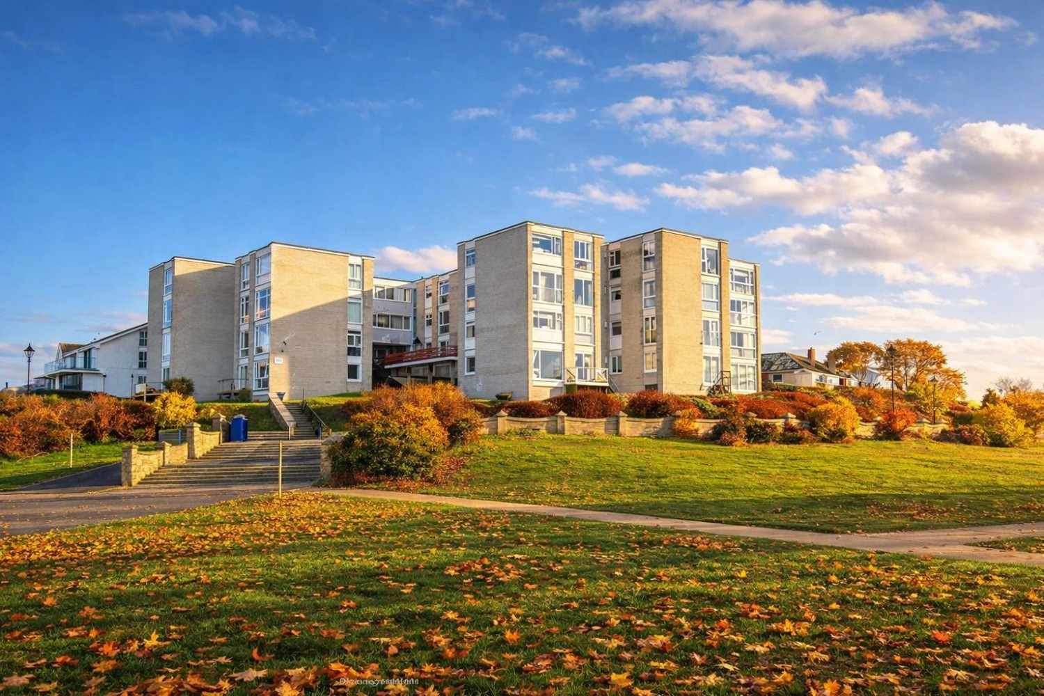 Doors from flat open directly onto the communal gardens.