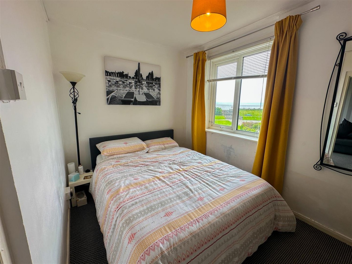UPVC double glazed window to the side elevation with sea views. Built in storage. Fitted carpet.