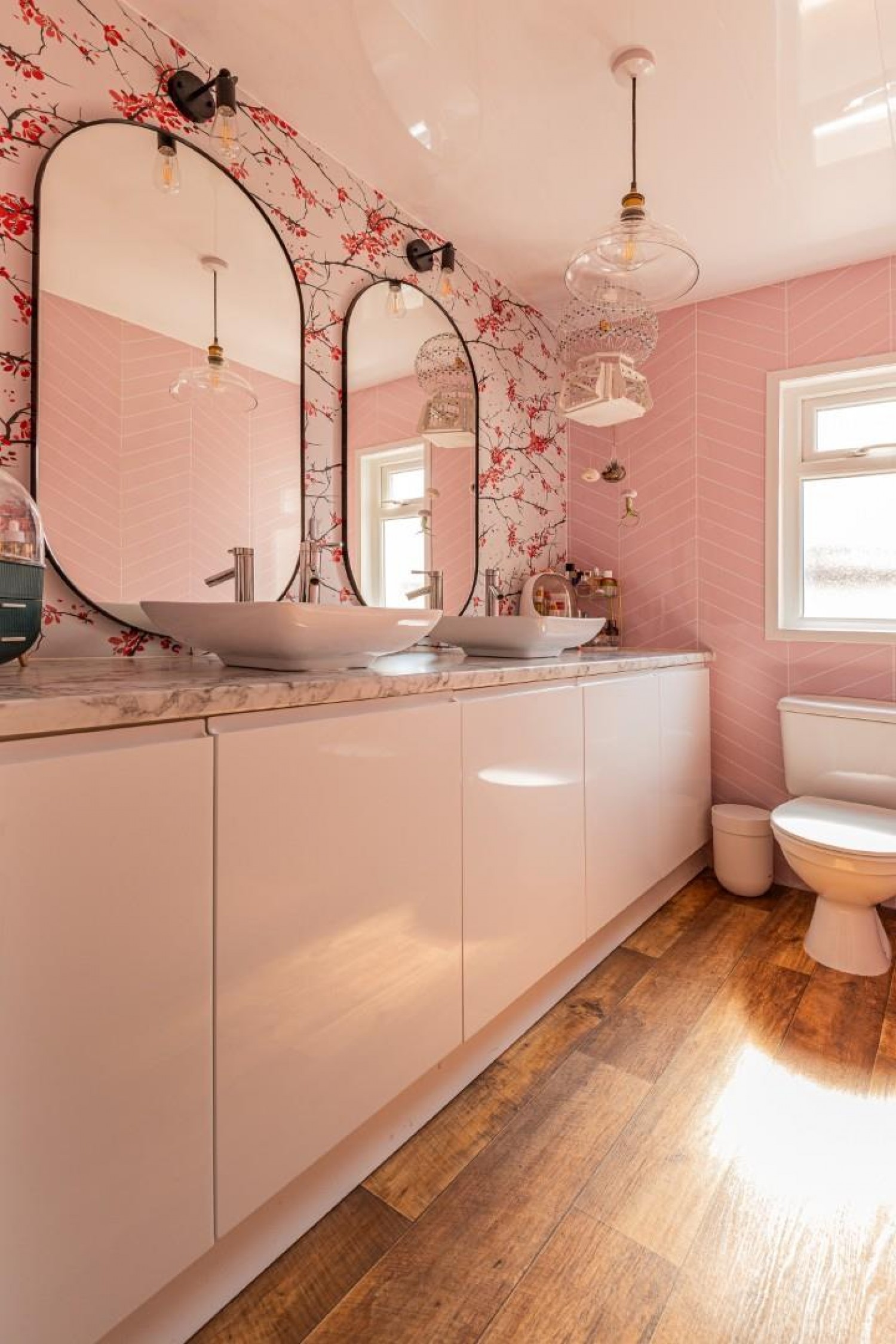 Beautifully appointed with side fitted base units with laminate worktop and 2 fitted over counter china wash hand basins each with a mixer tap, window to side.
