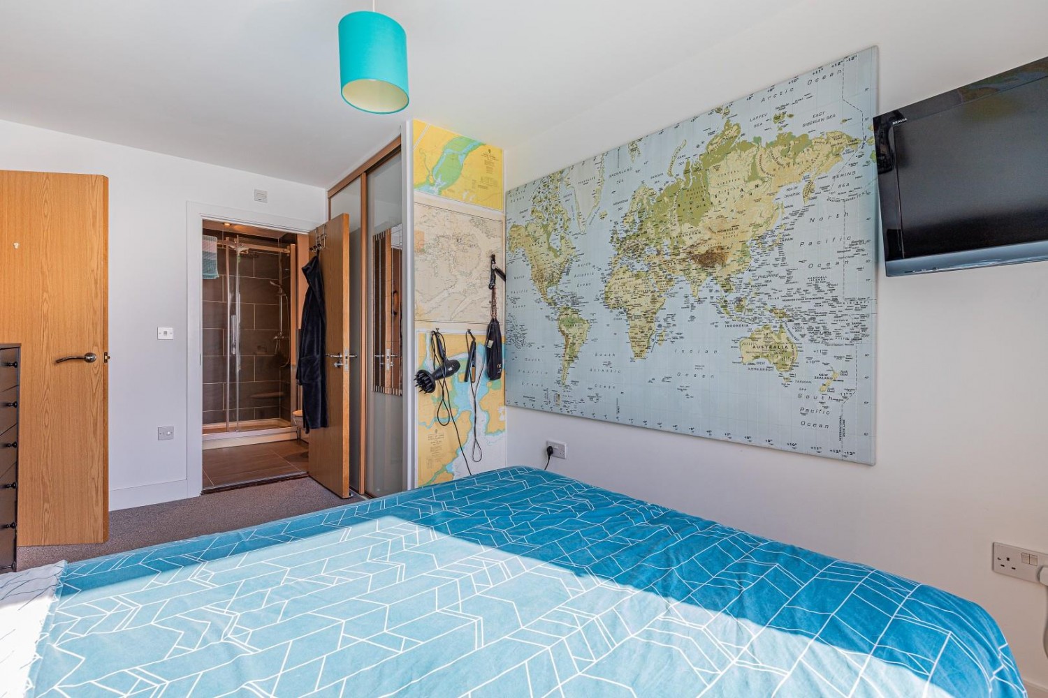 Double bedroom, window to rear with water views and a tilt & turn door leading onto the balcony, TV point, telephone point.