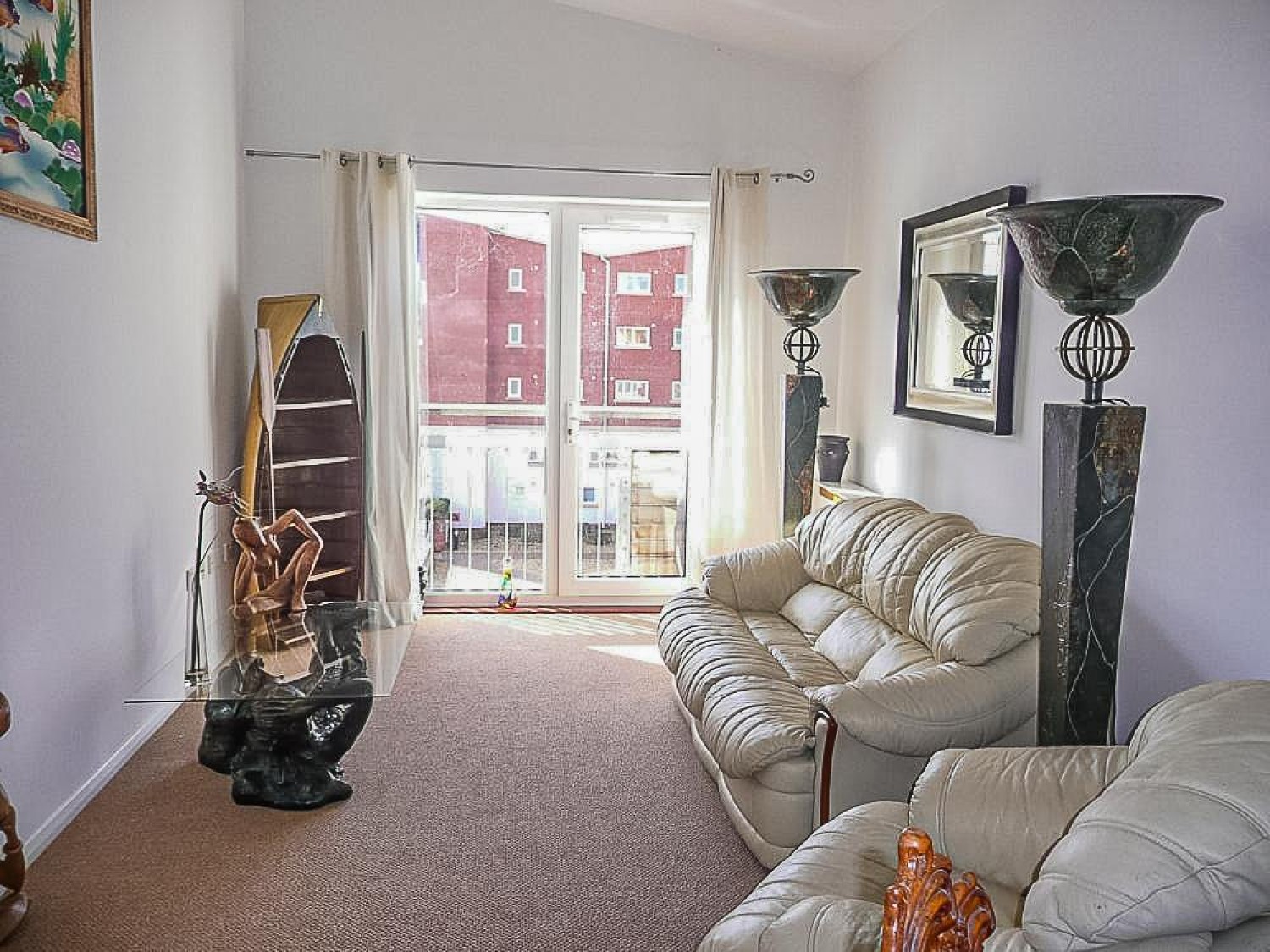 Generous living space open plan to the kitchen and dining area, part vaulted ceiling, fully glazed door with side glazed panel opens to a 'Juliet' balcony with a water view over the River Ely, TV point, telephone point.
