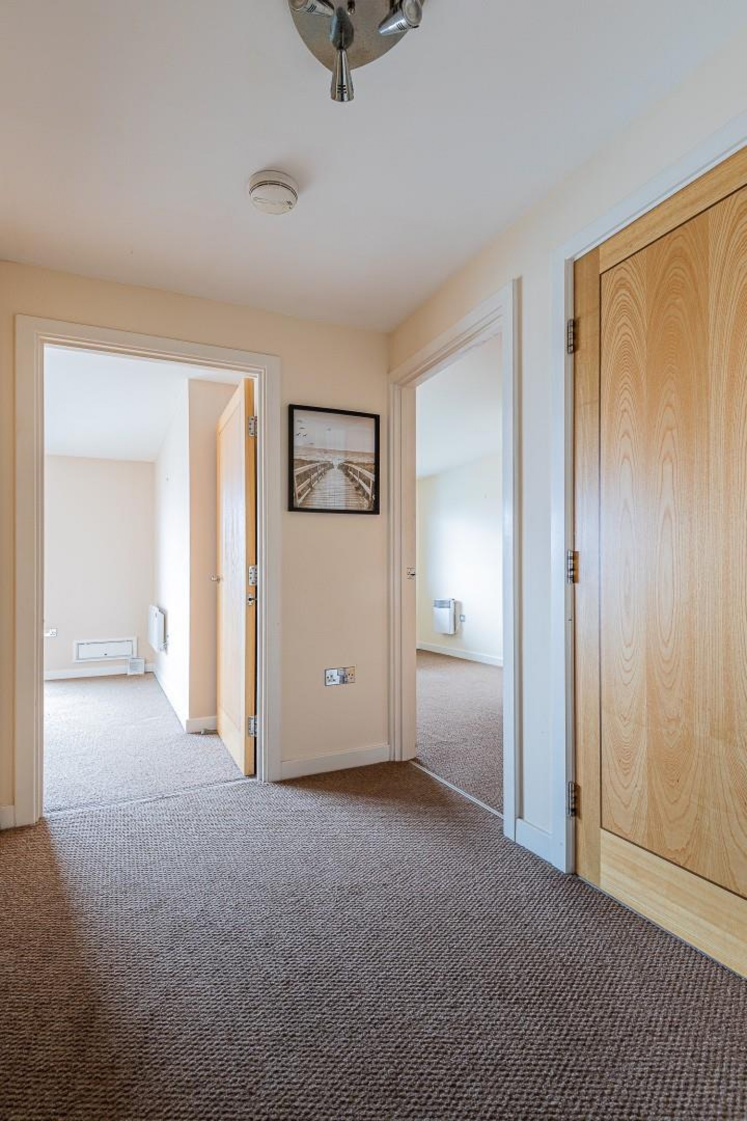 Leading to all rooms, intercom entry phone, built in cloaks cupboard plus walk in 8' airing/store cupboard with light and housing the hot water cylinder.