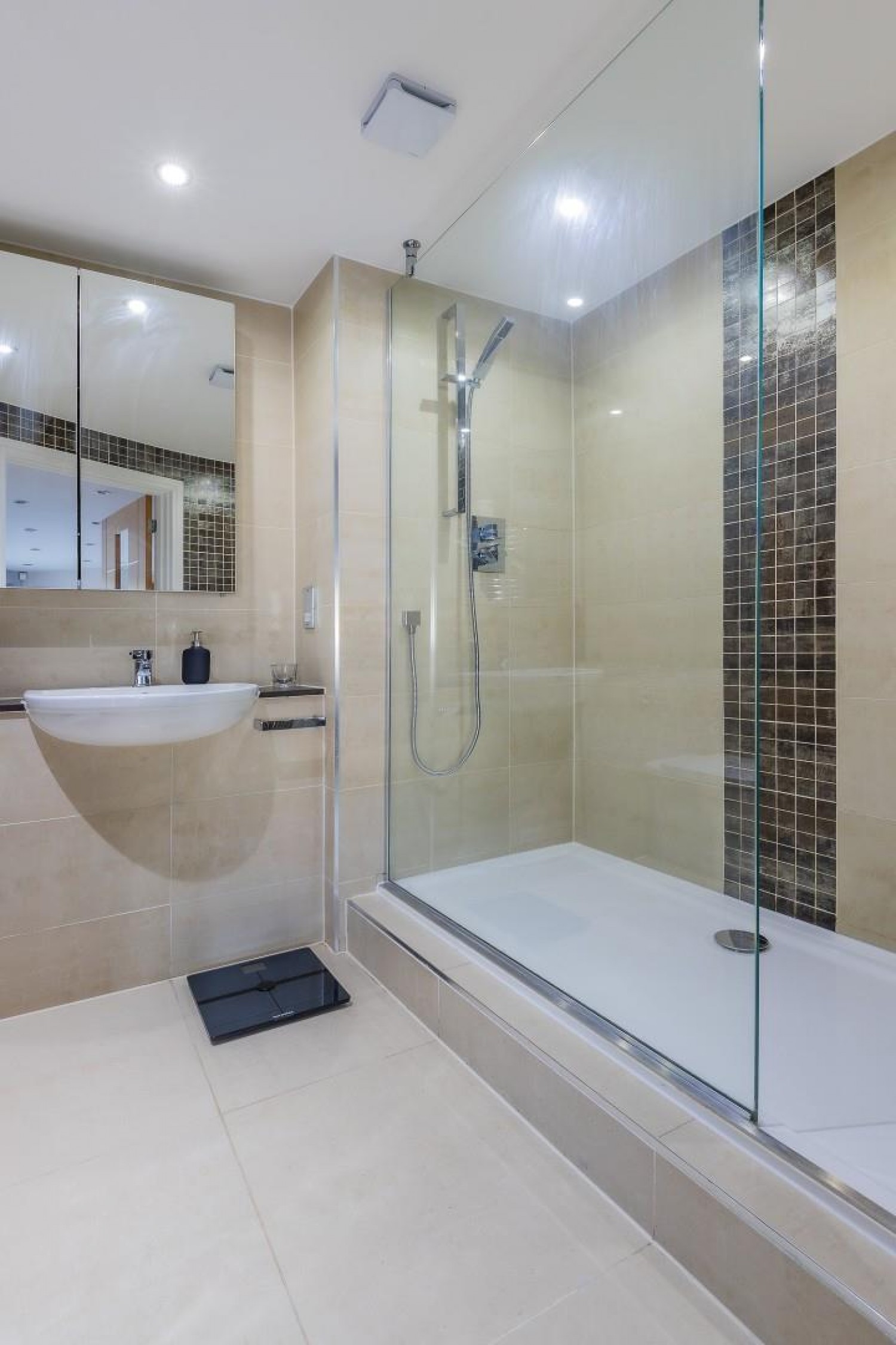 Generous room and stylishly appointed with a modern white suite comprising large shower area with glass screen, wall mounted wash hand basin and close coupled wc - concealed cistern, porcelain tiling to all walls and granite floor, heated chrome towel rail, twin shaver point, extractor fan.
