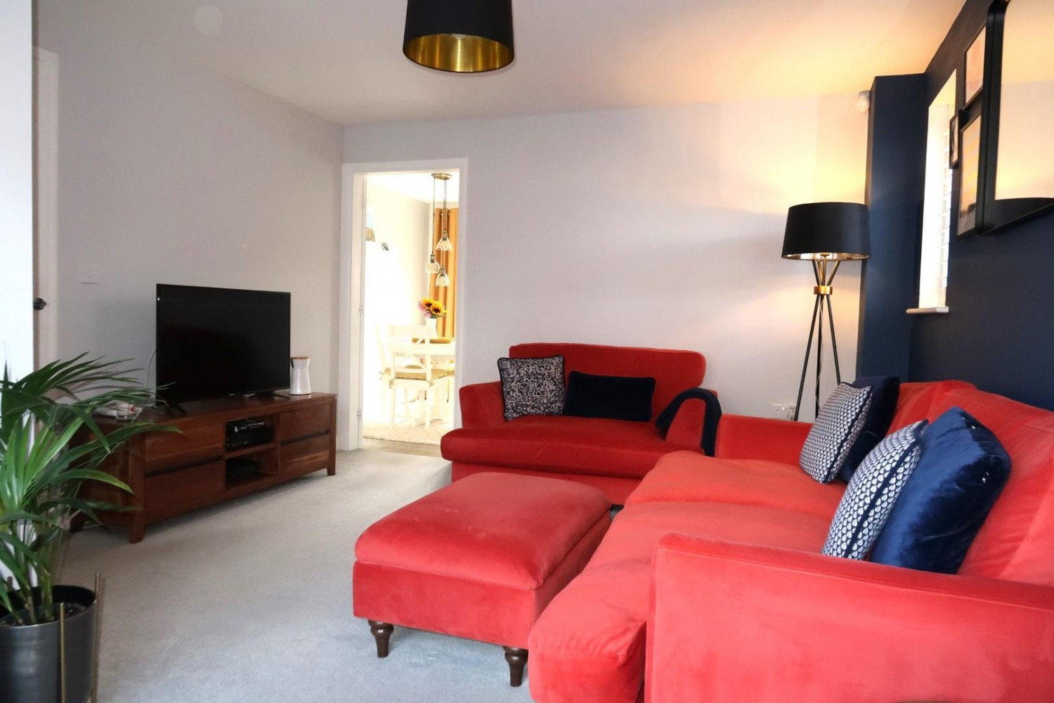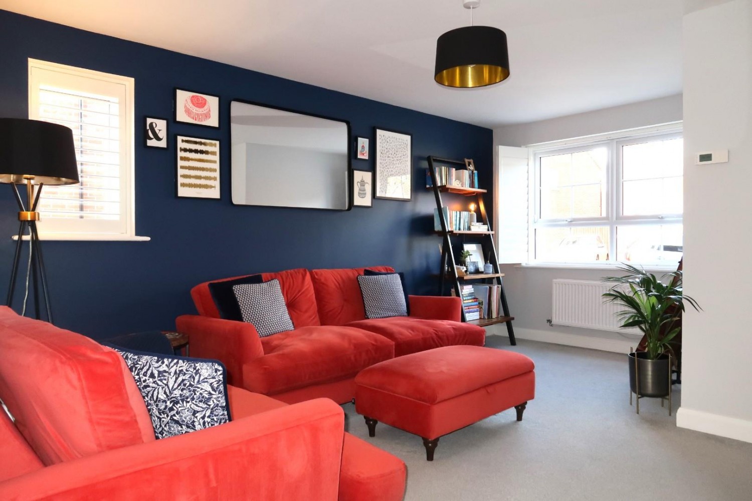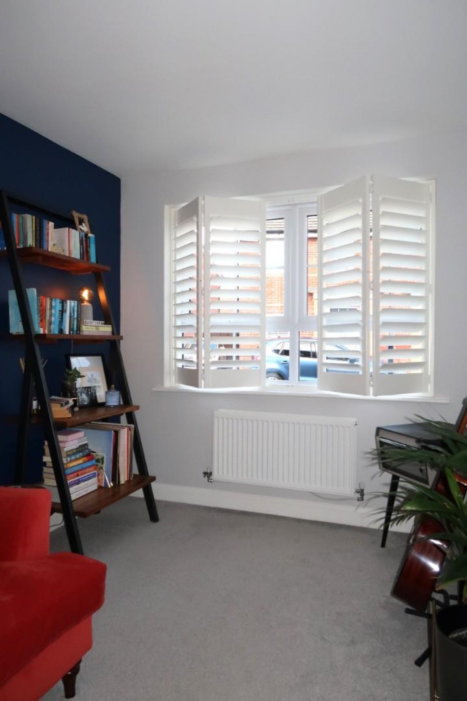 Generous living room, window to the front with bespoke shutters and window to side, TV point, telephone point.