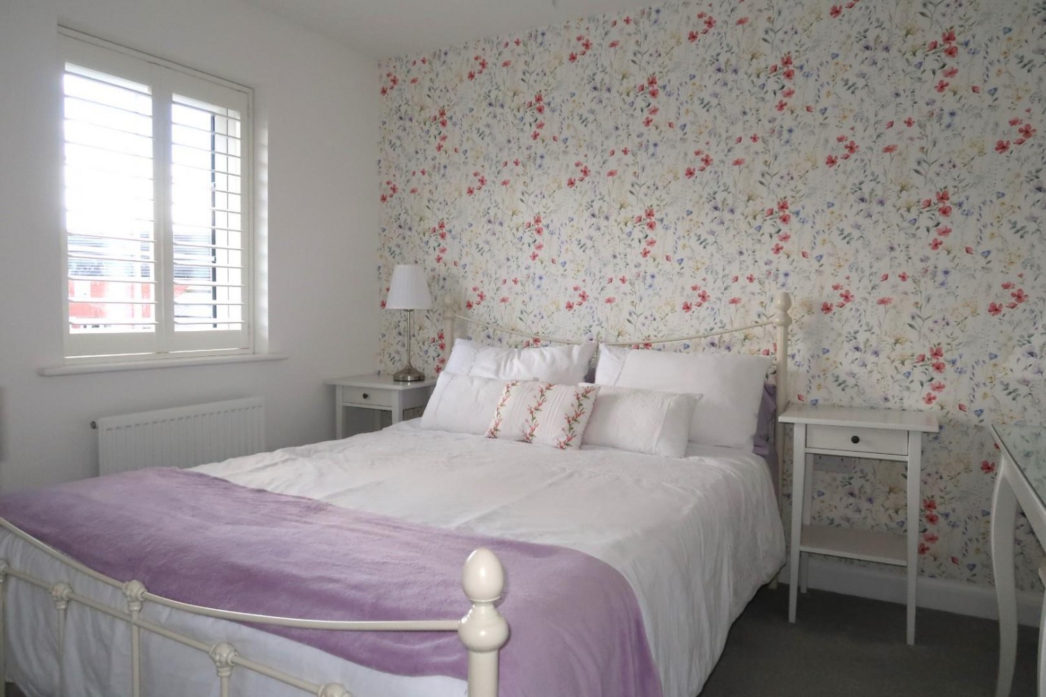 Master double bedroom, window to front with bespoke shutters, contemporary 3/4 panel wall, TV point, telephone point, built in double and single wardrobes.