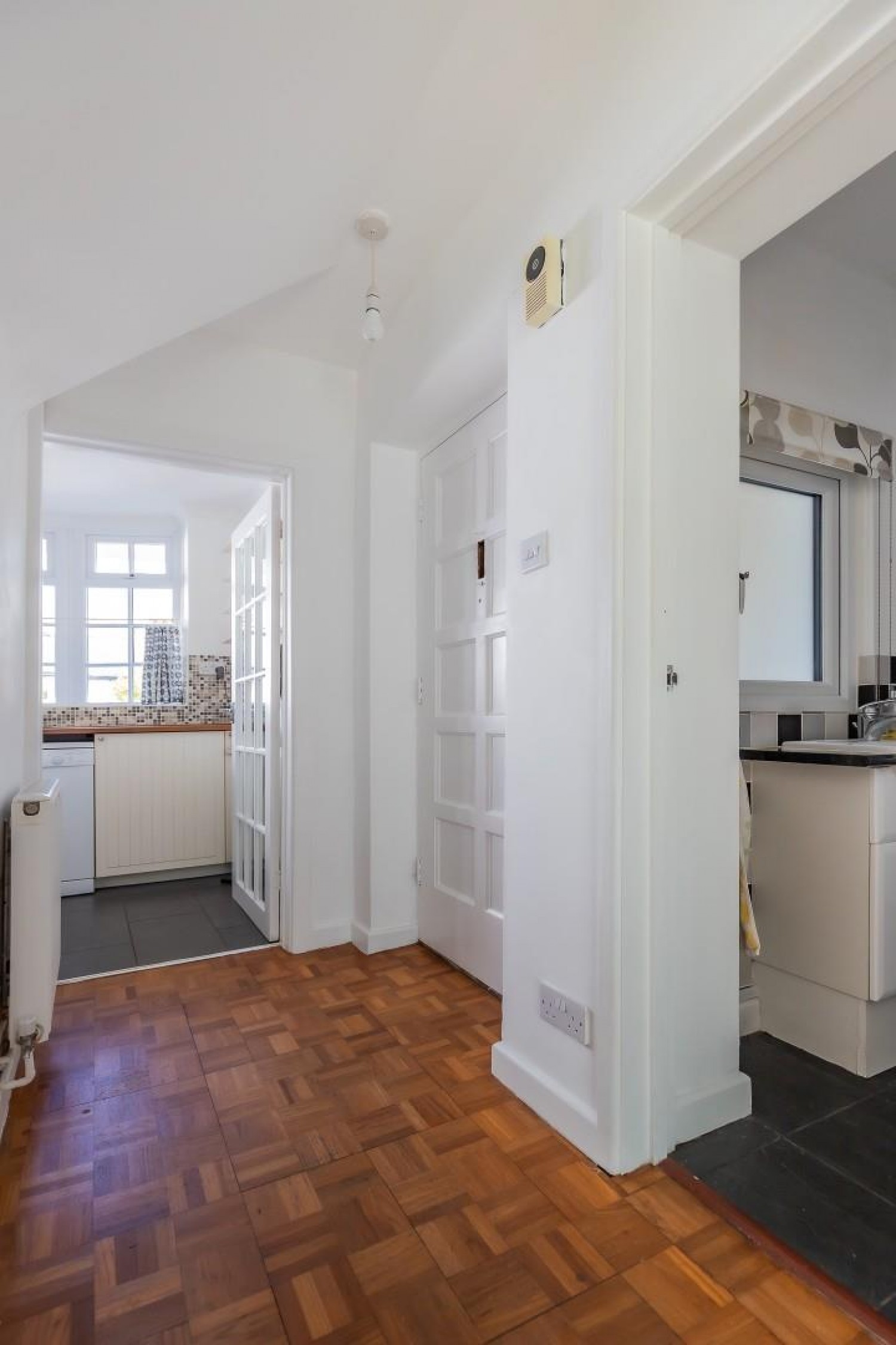 The cloakroom has been modernised to provide a WC with concealed cistern and wash hand basin. There are also built-in cupboards which accomodate the 'Worcester' combi boiler.