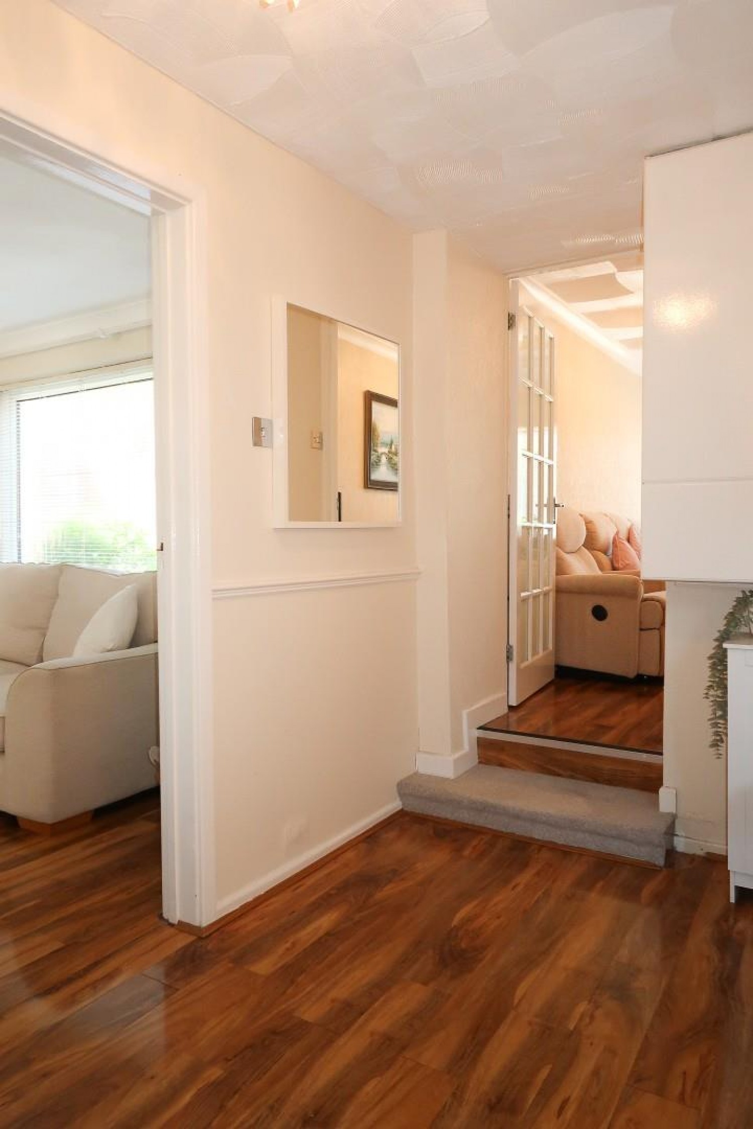 Enter via a upvc door with side glazed panel into a welcoming entrance hall, glossy laminate floor, stairs rise to the first floor.
