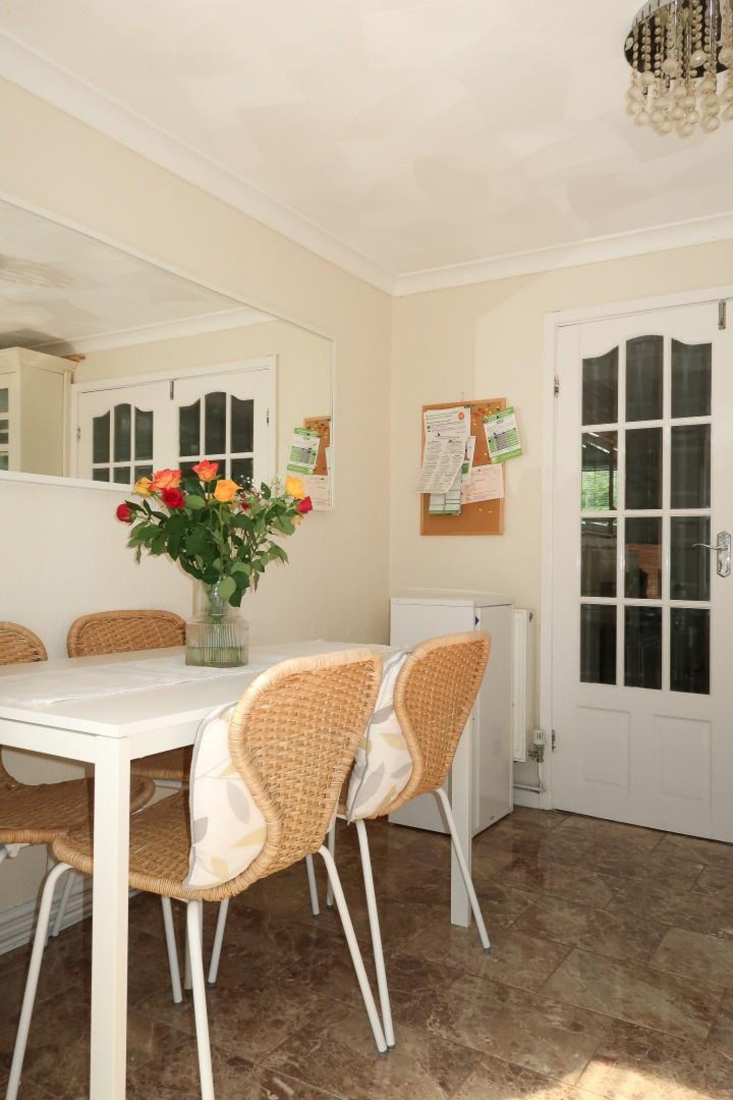 Upvc double glazed and overlooking the garden, polycarbonate roof, 3 windows plus door into the garden, TV point. tiled floor.