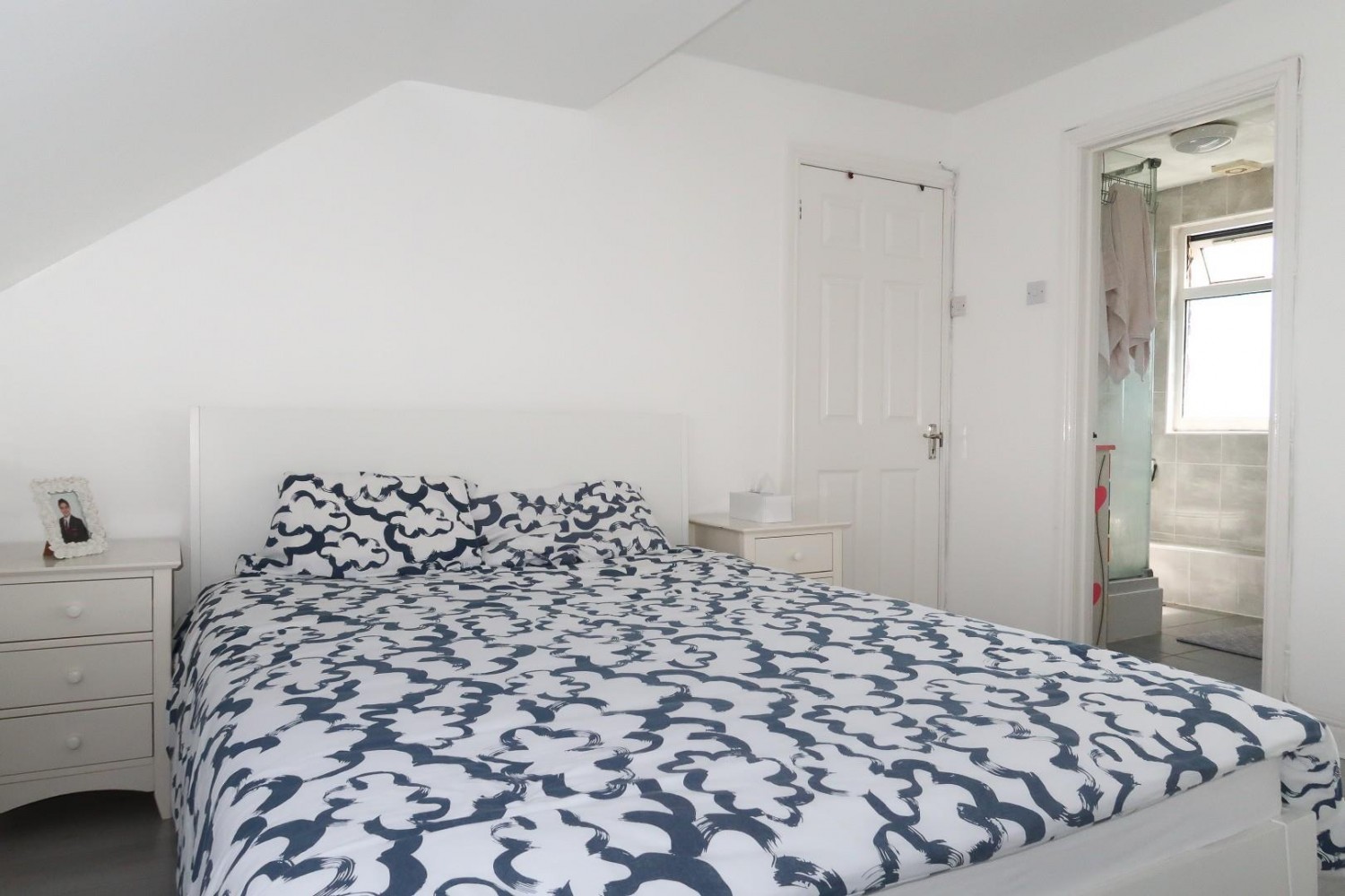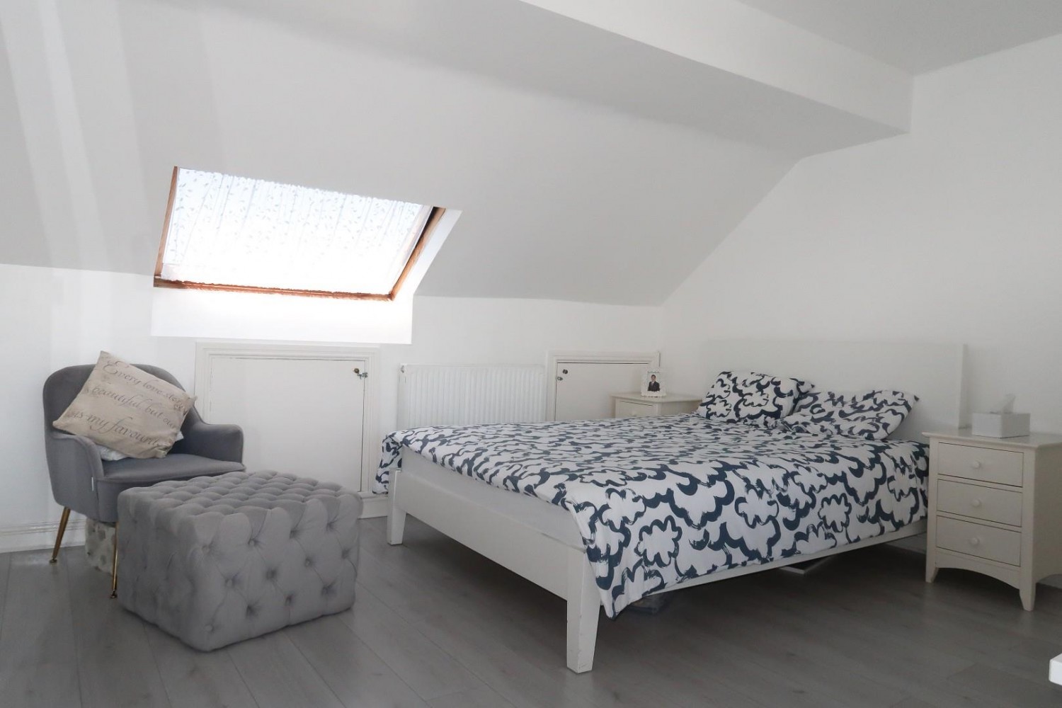Impressively large dormer conversion now providing a substantial bedroom, to one wall there are floor to ceiling bespoke wardrobes - 4 doubles plus fitted cupboards and storage, access into the eaves for storage, dormer window to rear offering a pleasant elevated view over Penarth and Velux roof window to the front, laminate flooring.