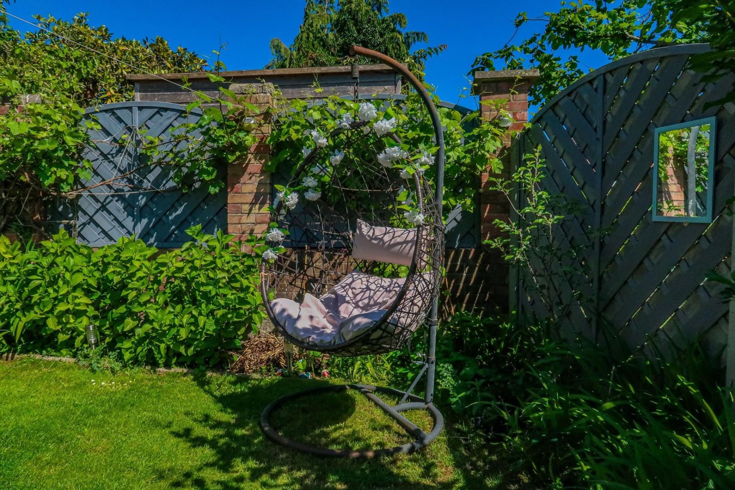 Enclosed southerly facing private rear garden - well tended, paved patio and neat lawn, established shrub borders & display, garden shed, outside tap, gated side access to another side gate in turn leading to the front.