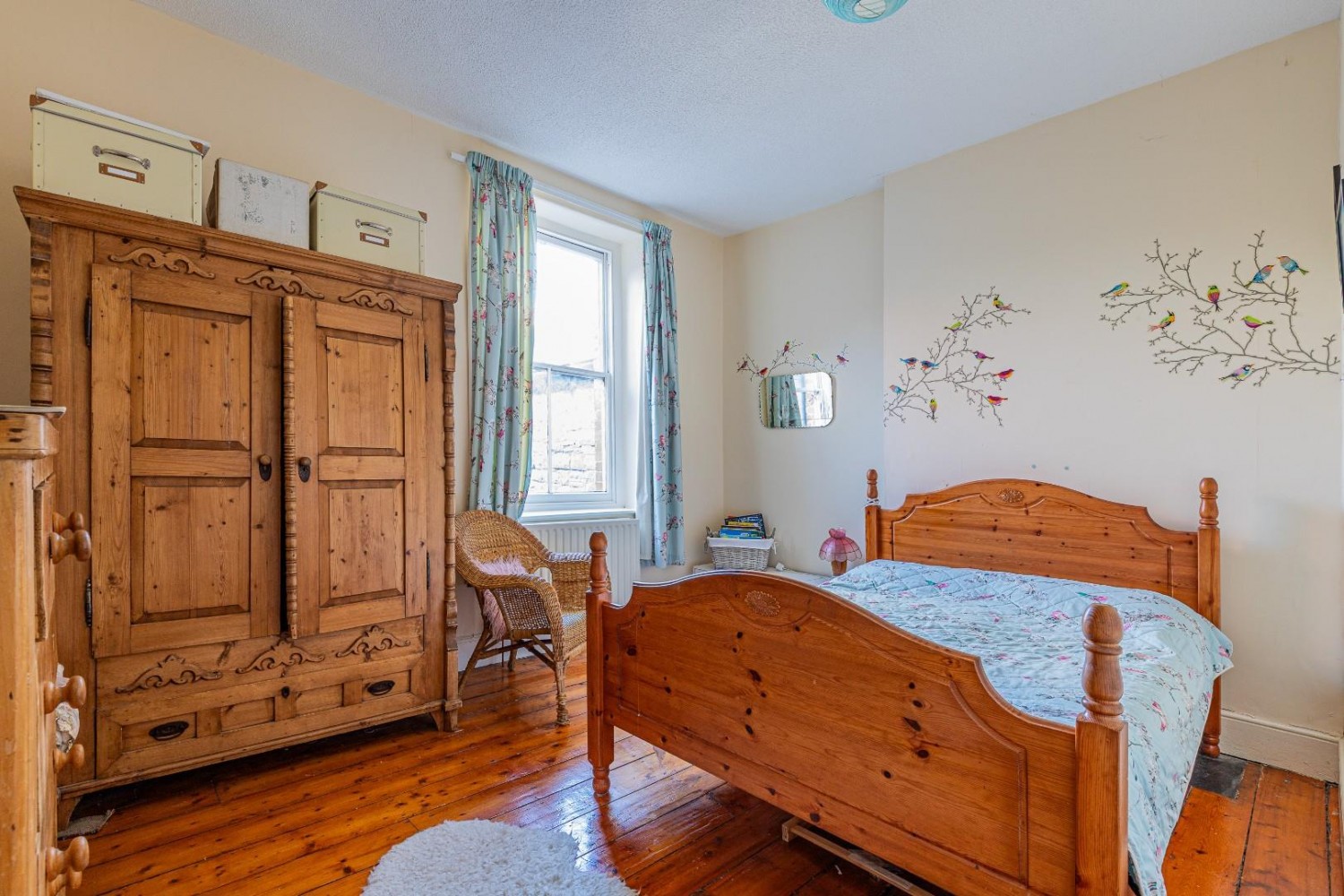 Double bedroom, window to rear, pine floor boards.