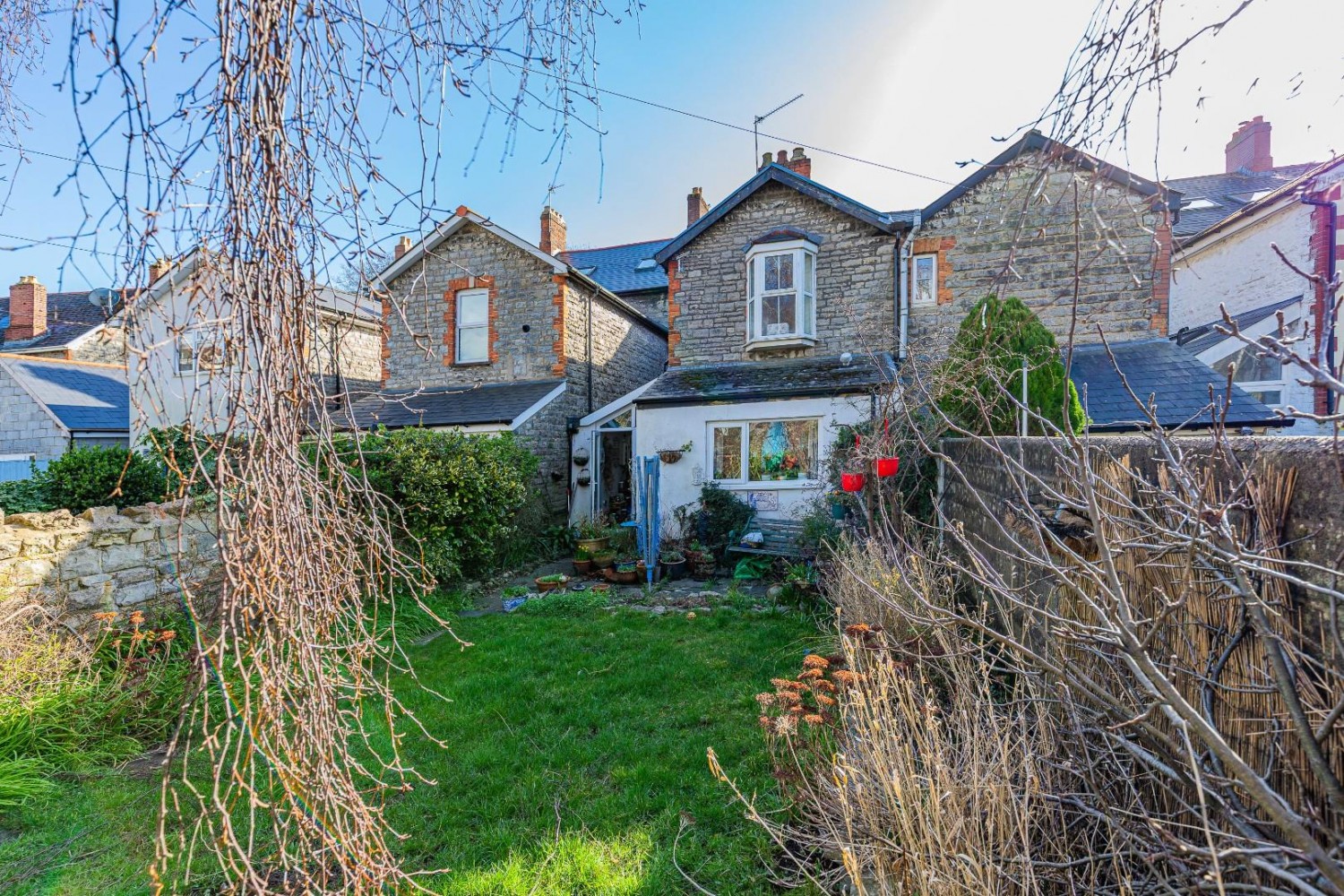Front garden - shrub display, boundary wall. Enclosed generous rear garden - rear lane access, mainly laid to lawn with flag stone patio, outside tap, exterior light.