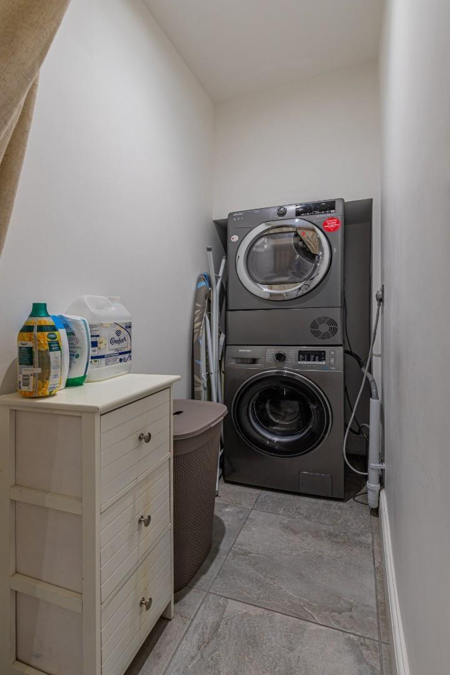 10' in length with plumbing for a washing machine plus space for a tumble drier, ceramic tiled flooring.