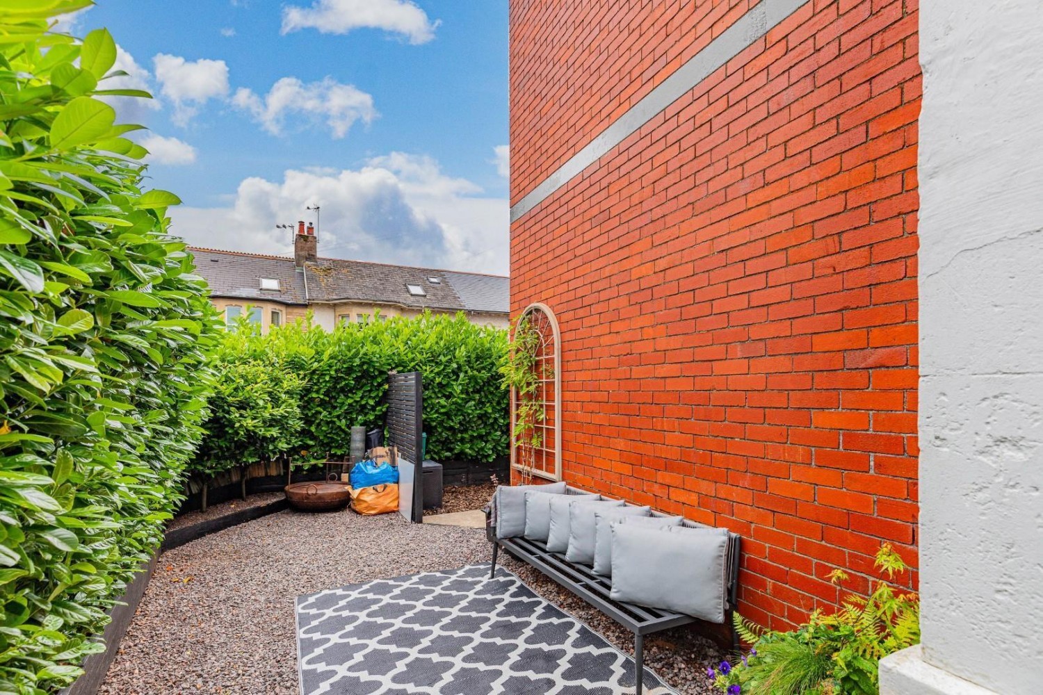 Enclosed garden - boundary wall plus established Laurel border, Indian sandstone patio plus stone chippings, outside tap, exterior power socket. At the rear a shared double garage - perfect for off road parking or storage.