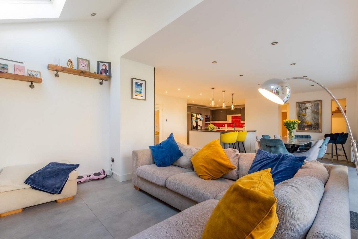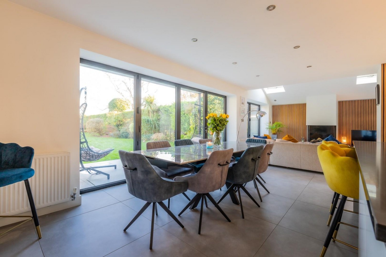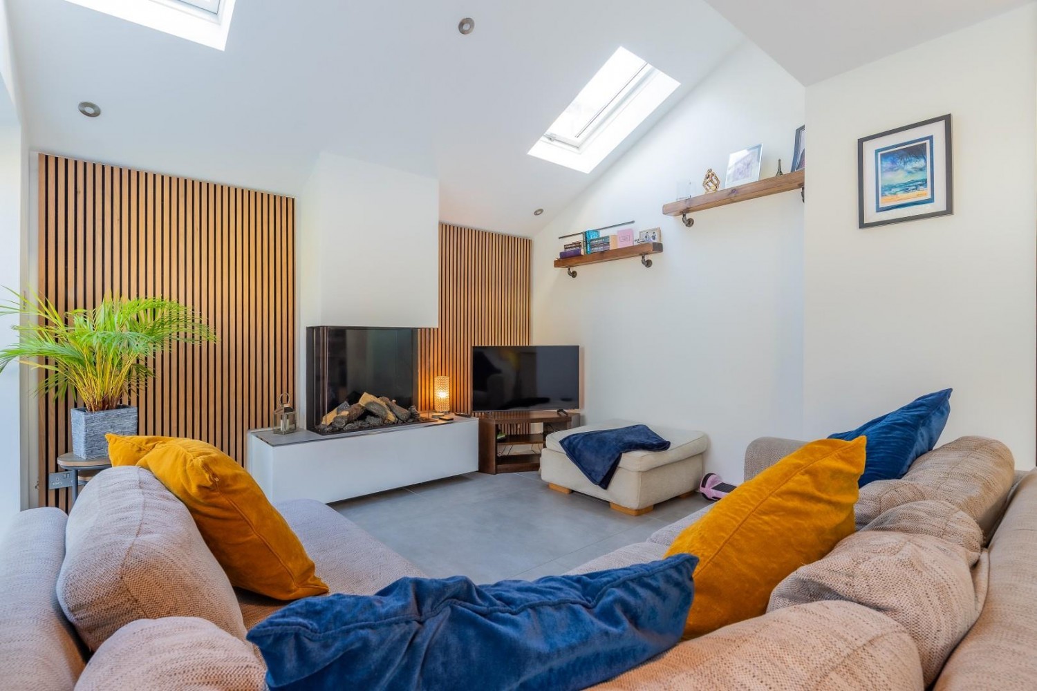 The dining area with its bi fold doors overlook and lead into the garden plus is open plan to a spacious family area again with bi fold doors into the garden plus 2 velux roof windows, TV point.