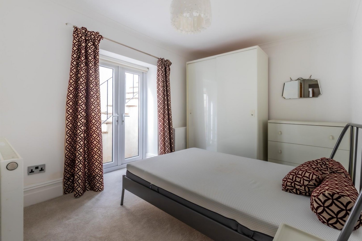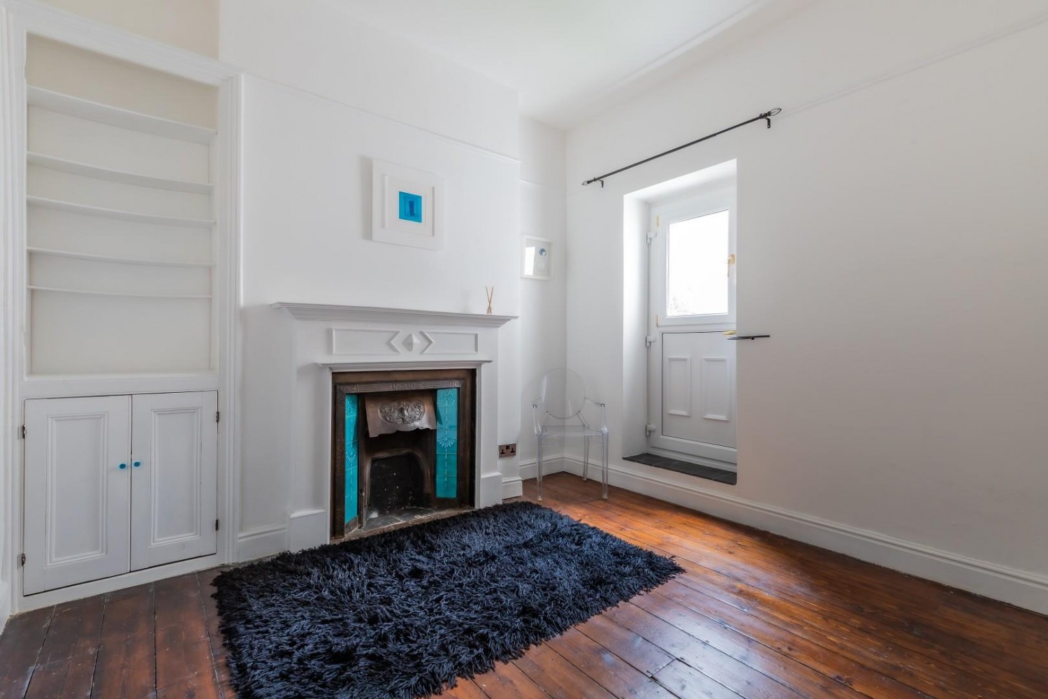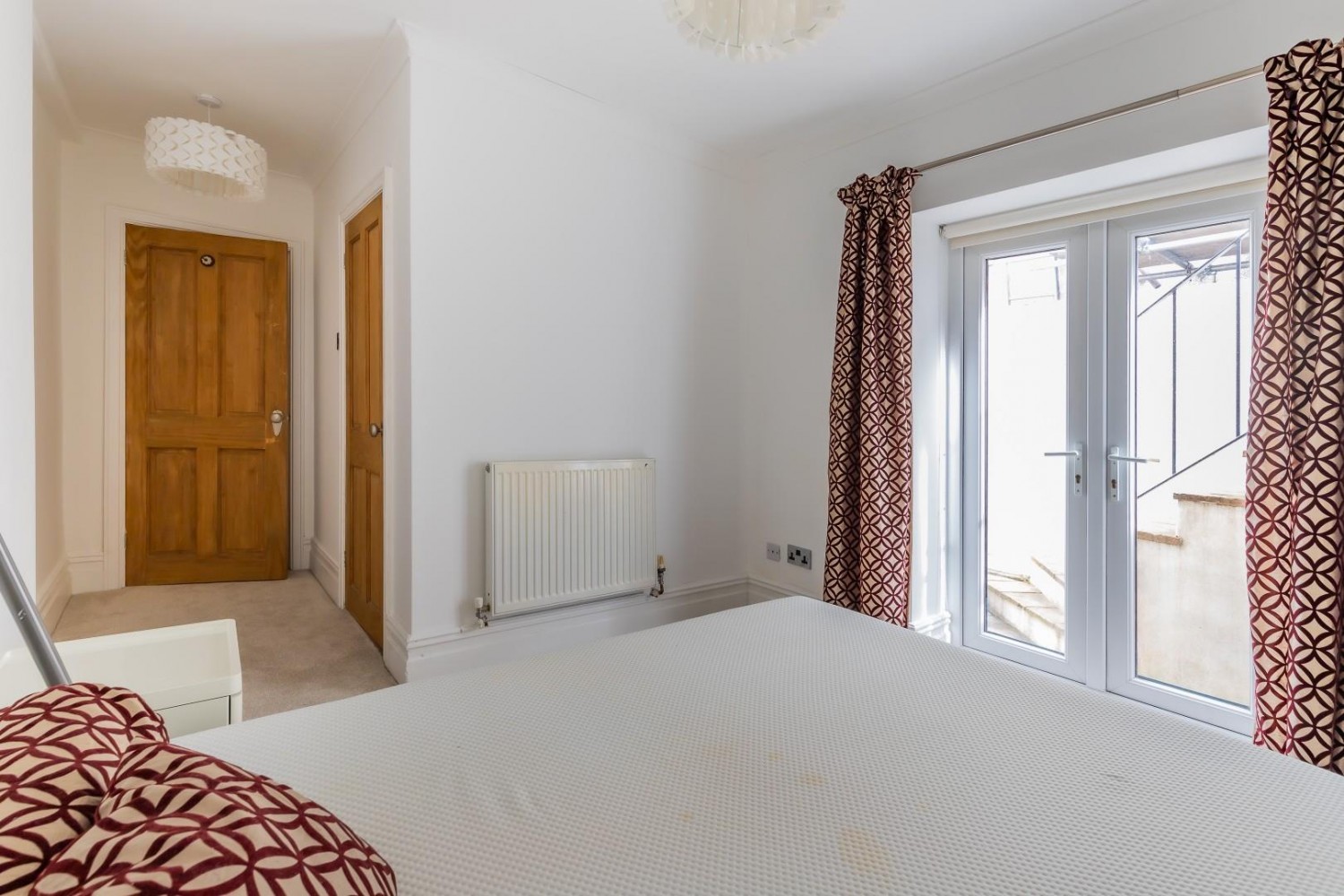 Double bedroom, door with stable window leading into the rear garden, period surround with Antique grate, exposed floorboards, picture rail.