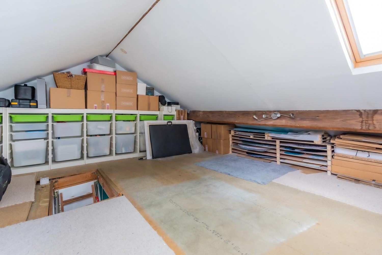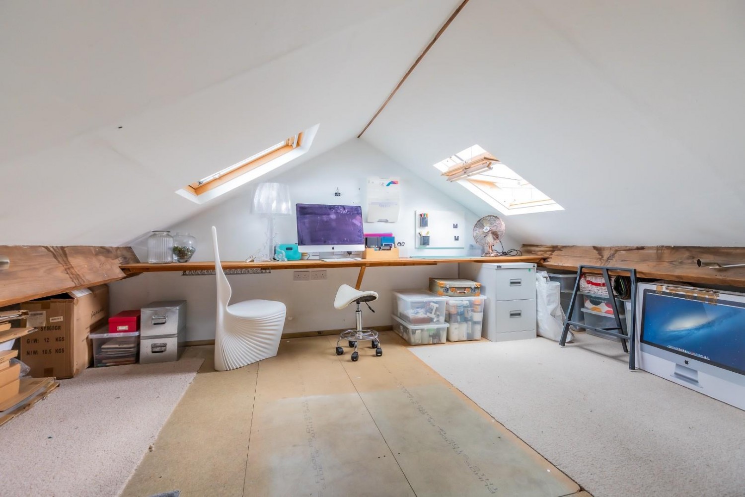 Access via a retracting wooden 'Slingsby' ladder, boarded and fully insulated with light & power, 2 velux roof windows, currently used as an office.