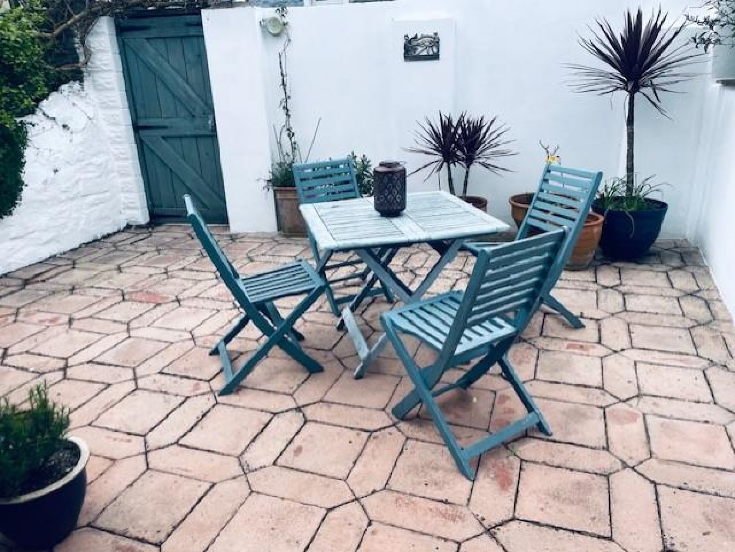 With small front garden plus an enclosed southerly facing paved garden at the rear with rear access.