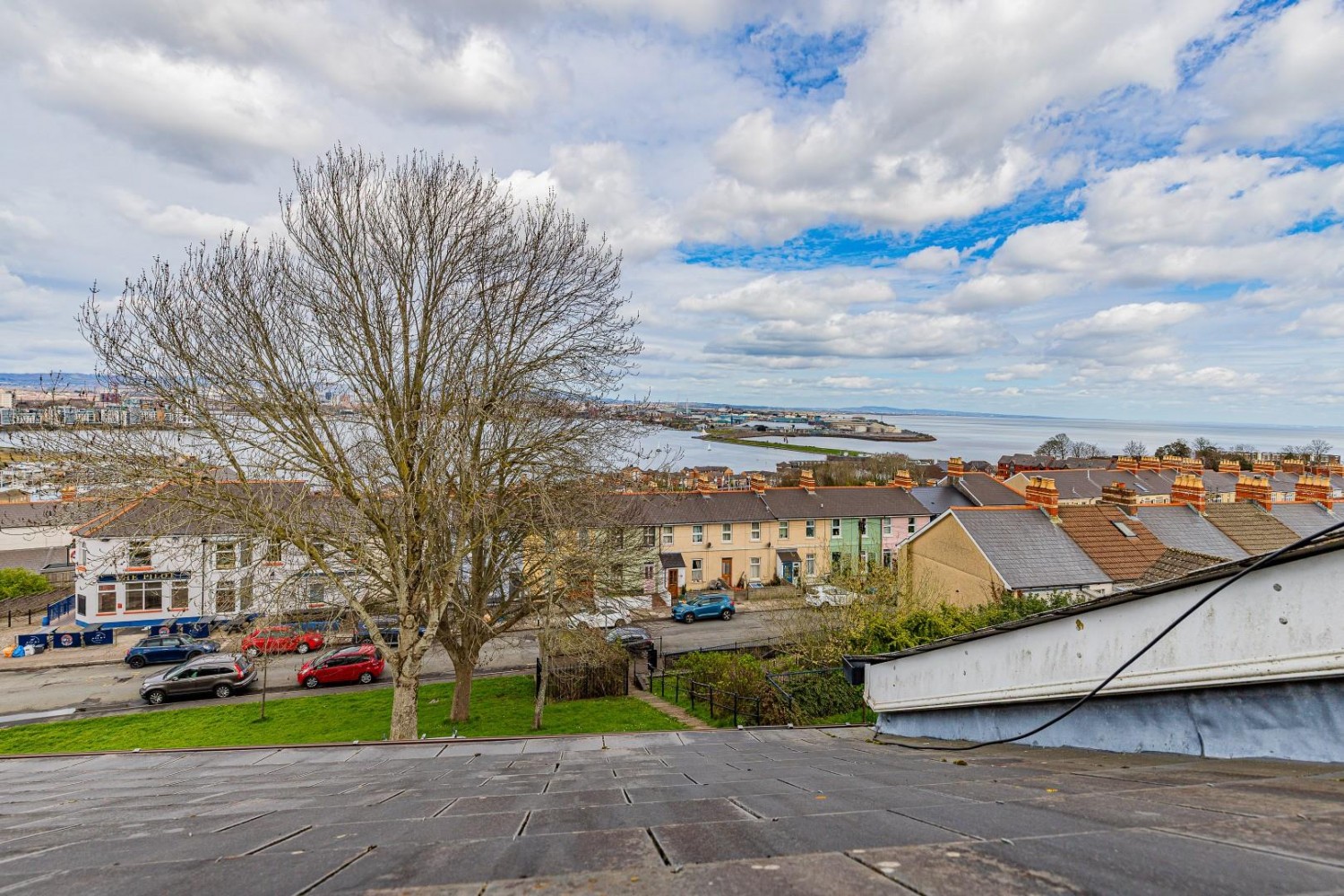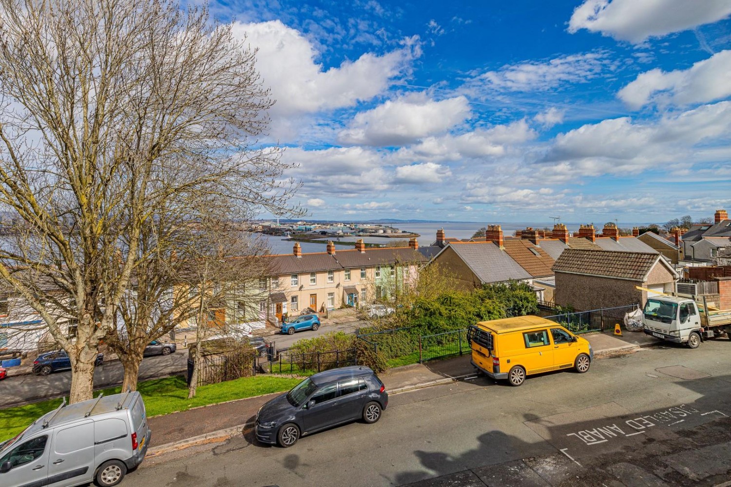 Impressively spacious and elegant living room - originally 2 rooms, exposed floorboards, coving, 2 windows to the front with window seats both command an elevated view of the Bristol Channel towards Cardiff & beyond, a slingsby wooden ladder leads to the loft, window to rear.
