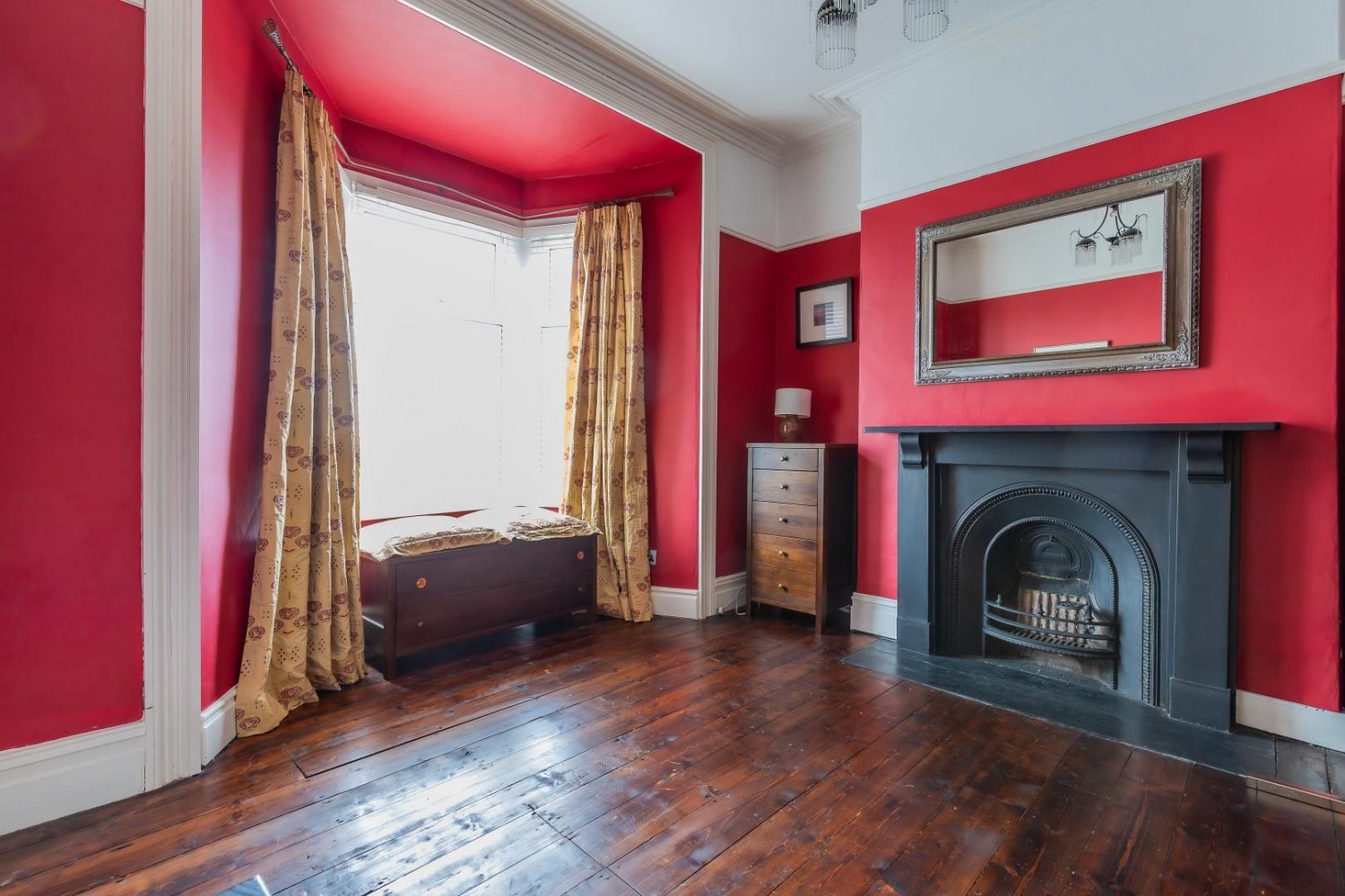 Large double bedroom, bay window to front, exposed floorboards, Antique slate fire surround with grate inset, original ceiling rose, coving plus picture rail.