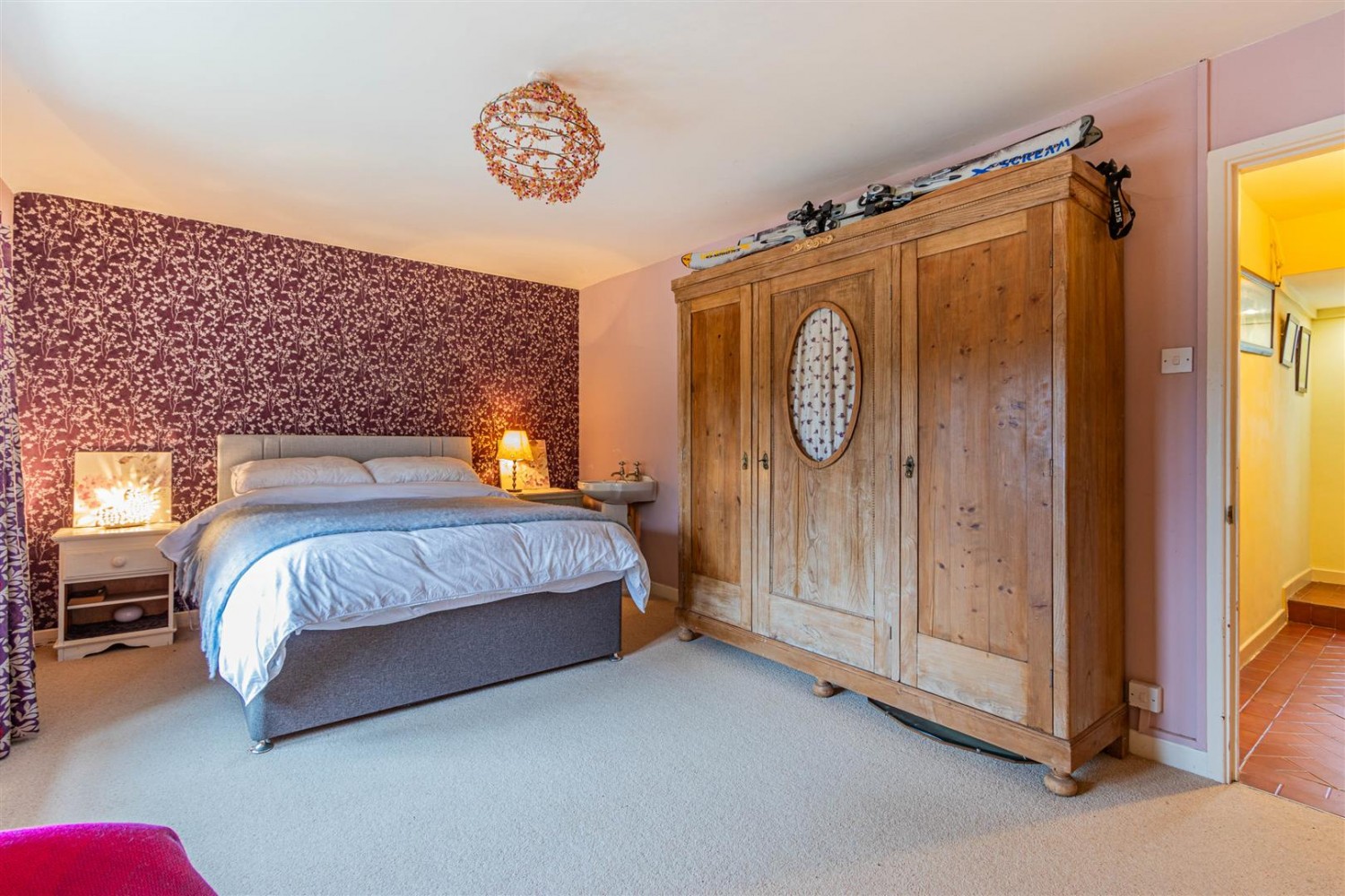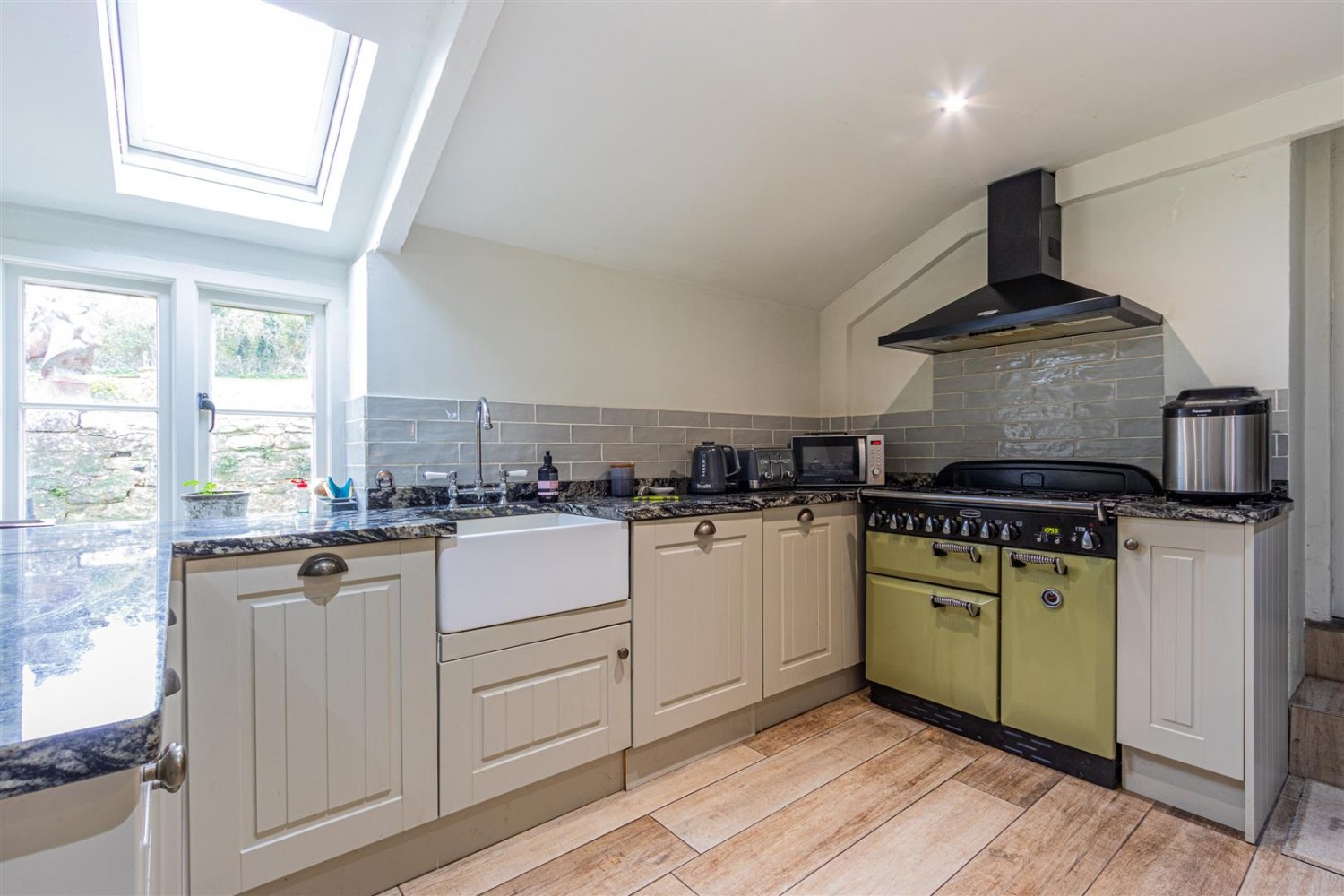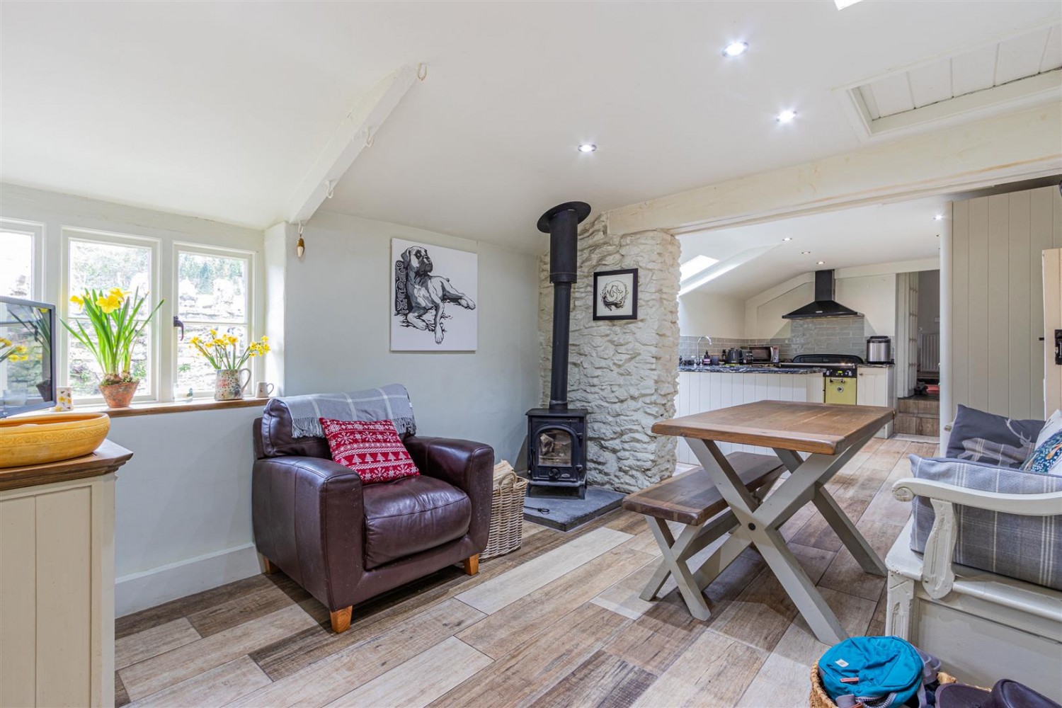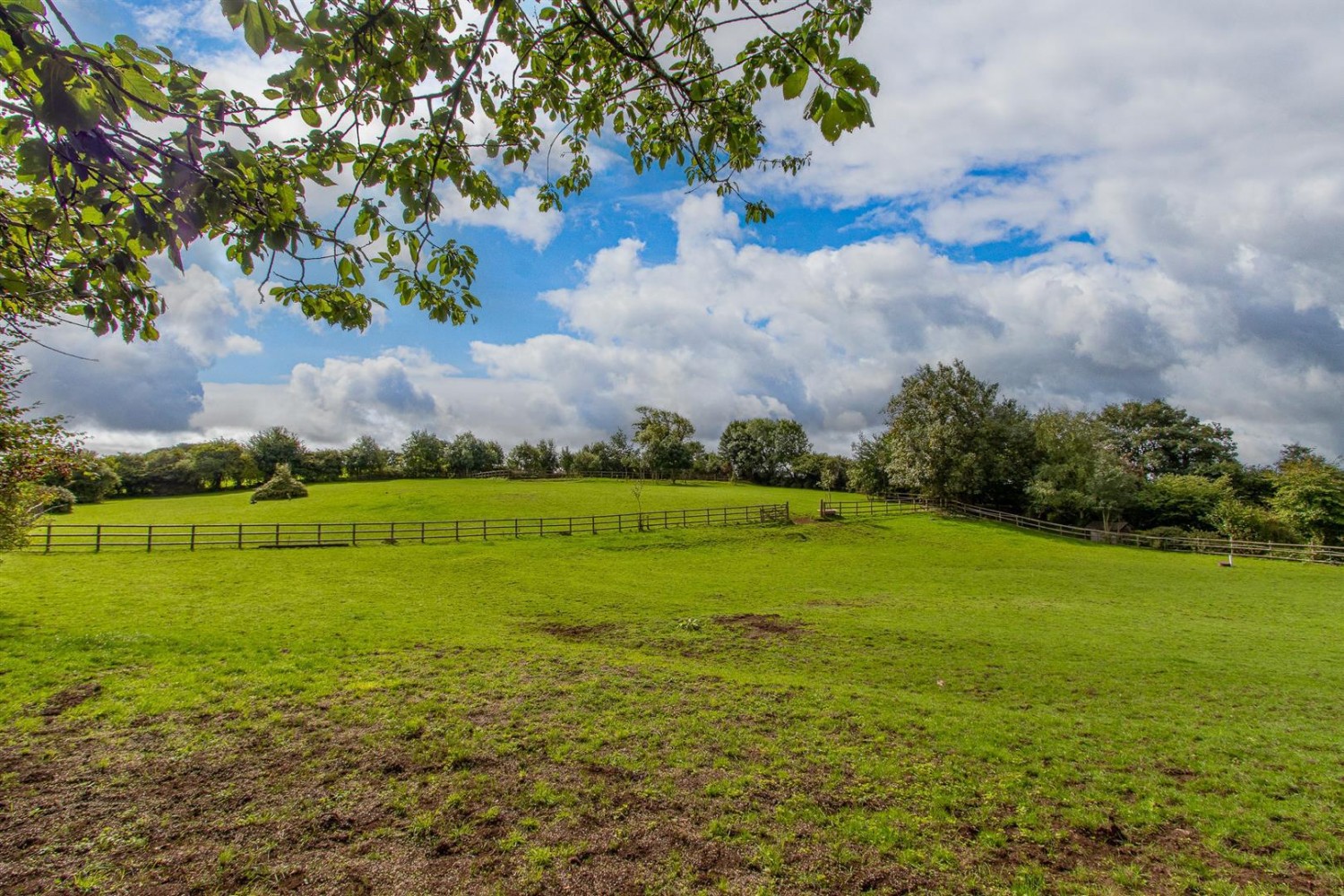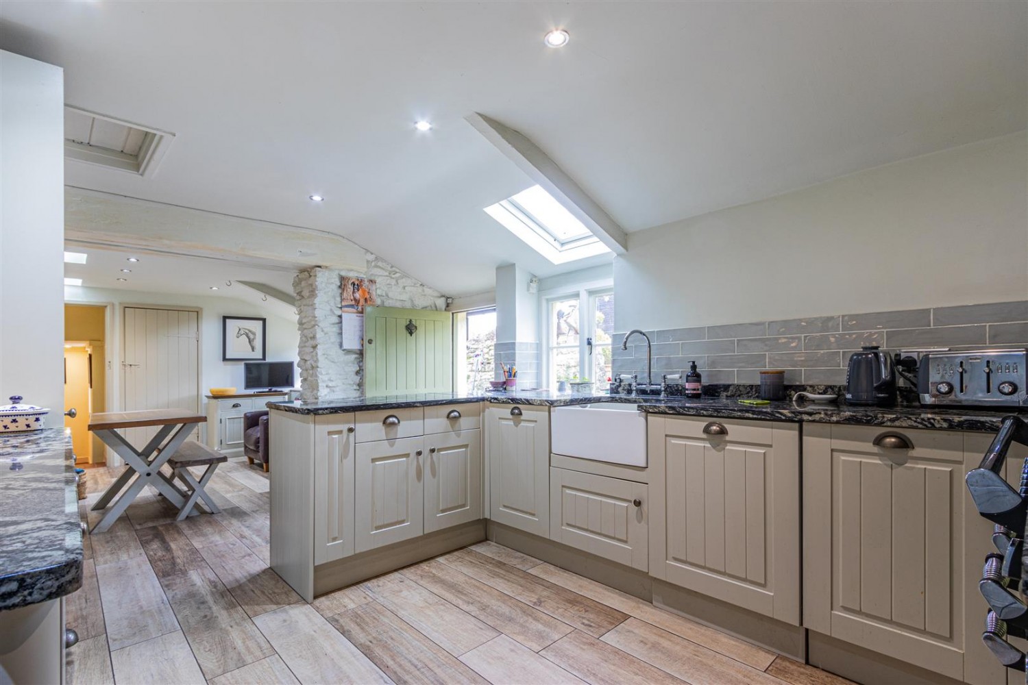 Access of the country lane via a pair of large timber gates with pedestrian gate alongside. Stone wall to country lane. Large courtyard area laid to stone sets with parking space for numerous cars and leading to stone built garage. Open fronted and with electric light and power. Adjacent stone store room that are used for storing logs for the burners. Large lawned rear garden containing the barn and stables.