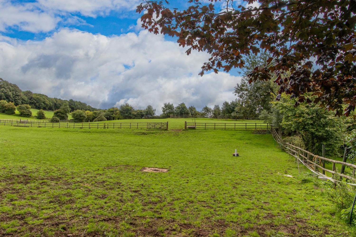 The garden is laid principally to lawn which slopes up gently away from the house with natural hedge, trees and bushes. There is a splendidly large blossom tree adjoining the front terrace and a stone wall surrounds the old disused well with hand pumps. The two paddocks are divided by post and rail fence with gateway between. There is also a menage laid to rubber/sand and measuring approximately 120 ft x 60ft (40m x 20m) but this has not been used for some time.