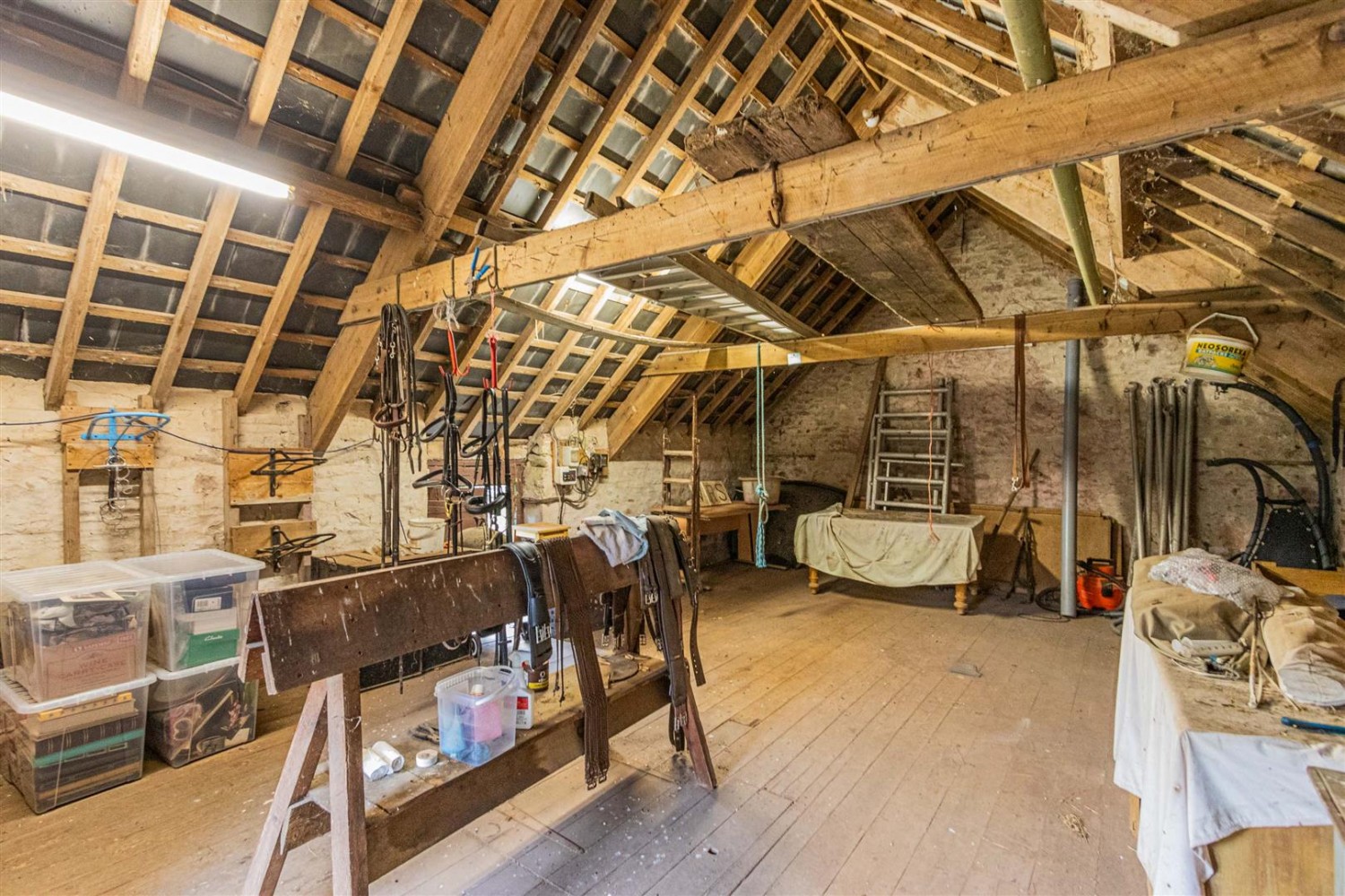 Stone built two storey detached barn. The ground floor is accessed via a 8'6" wide 7'6" high archway and is spilt internally into two block built boxes and entrance area. Windows to front and side. External water point. The first floor is approached via a flight of external steps. Boarded floor. High pitched and beamed ceiling and electric light and power. The detached stable block is alongside the barn and is L shaped and split into three separate compartments. Compartment One (20' x 10'9") doorway with electric light and power. Compartment Two (12' x 12') with stable door and electric light. Compartment Three (12' x 12') with stable door and electric light.