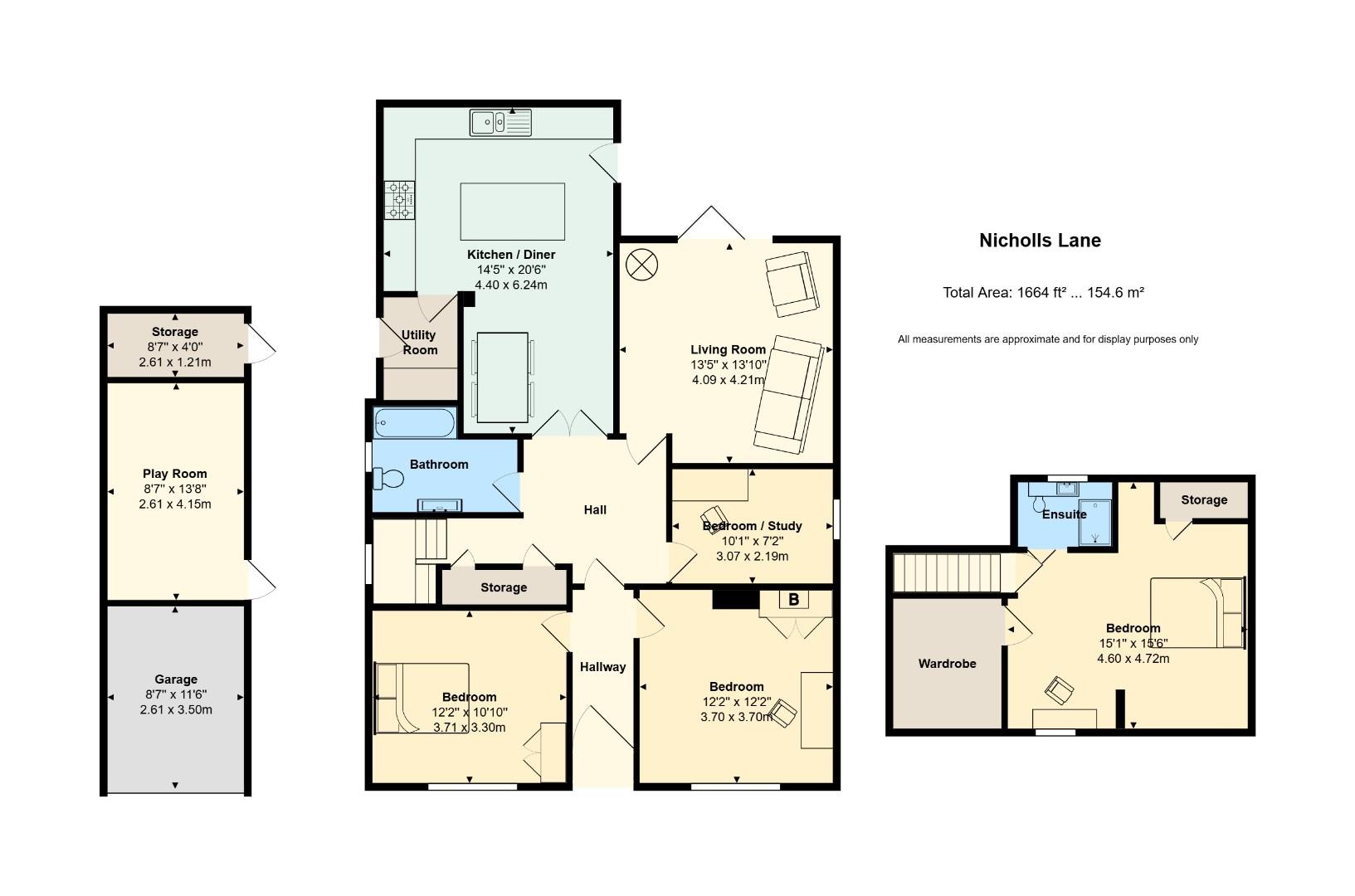 The property boasts three well-appointed bedrooms on the ground floor, ensuring convenience and accessibility. The master suite, located on the first floor, offers a private retreat, complete with its own en-suite bathroom, providing a touch of luxury and seclusion.